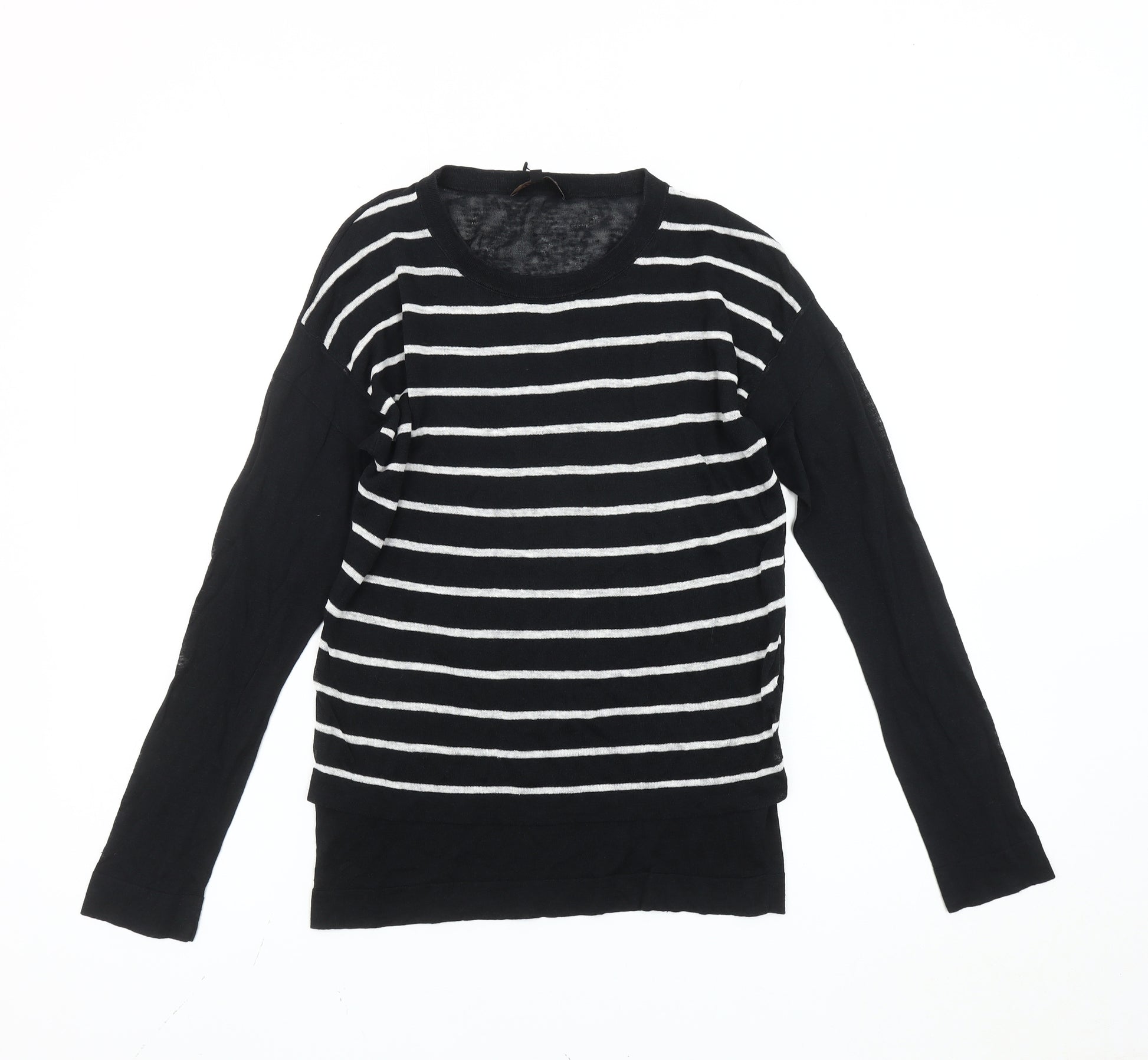 Womens Black Striped Linen Blend Jumper Size S Crew Neck