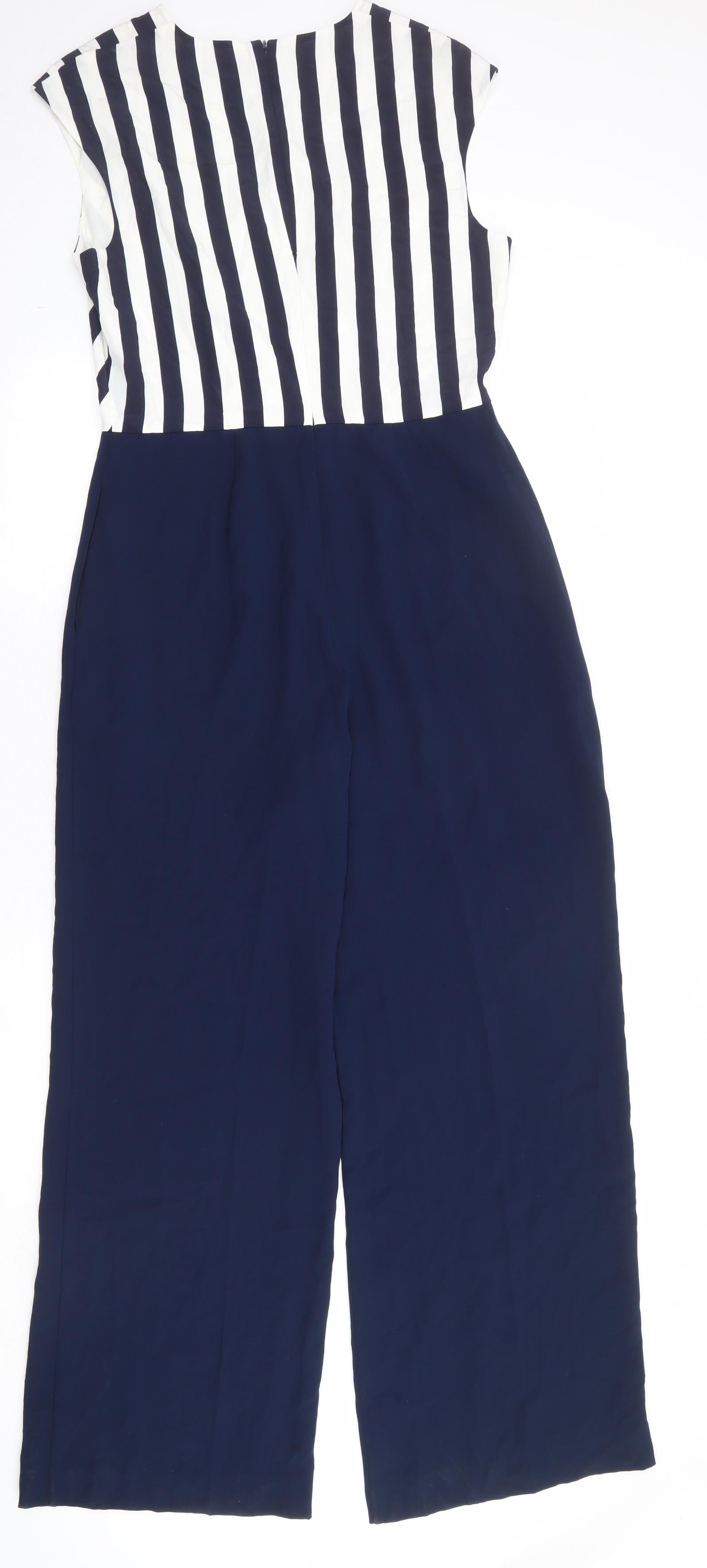 Womens Blue Striped Polyester Jumpsuit One-Piece Size 12 Zip