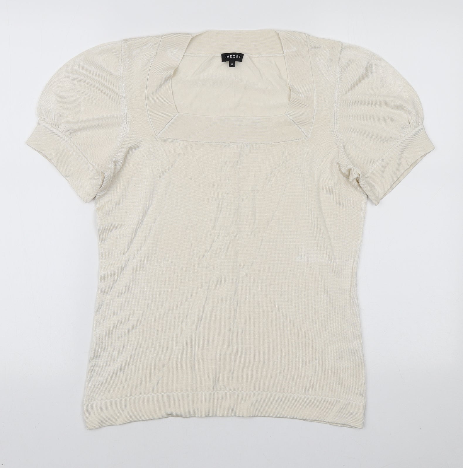Womens Ivory Viscose Basic T-Shirt Size M Square Neck