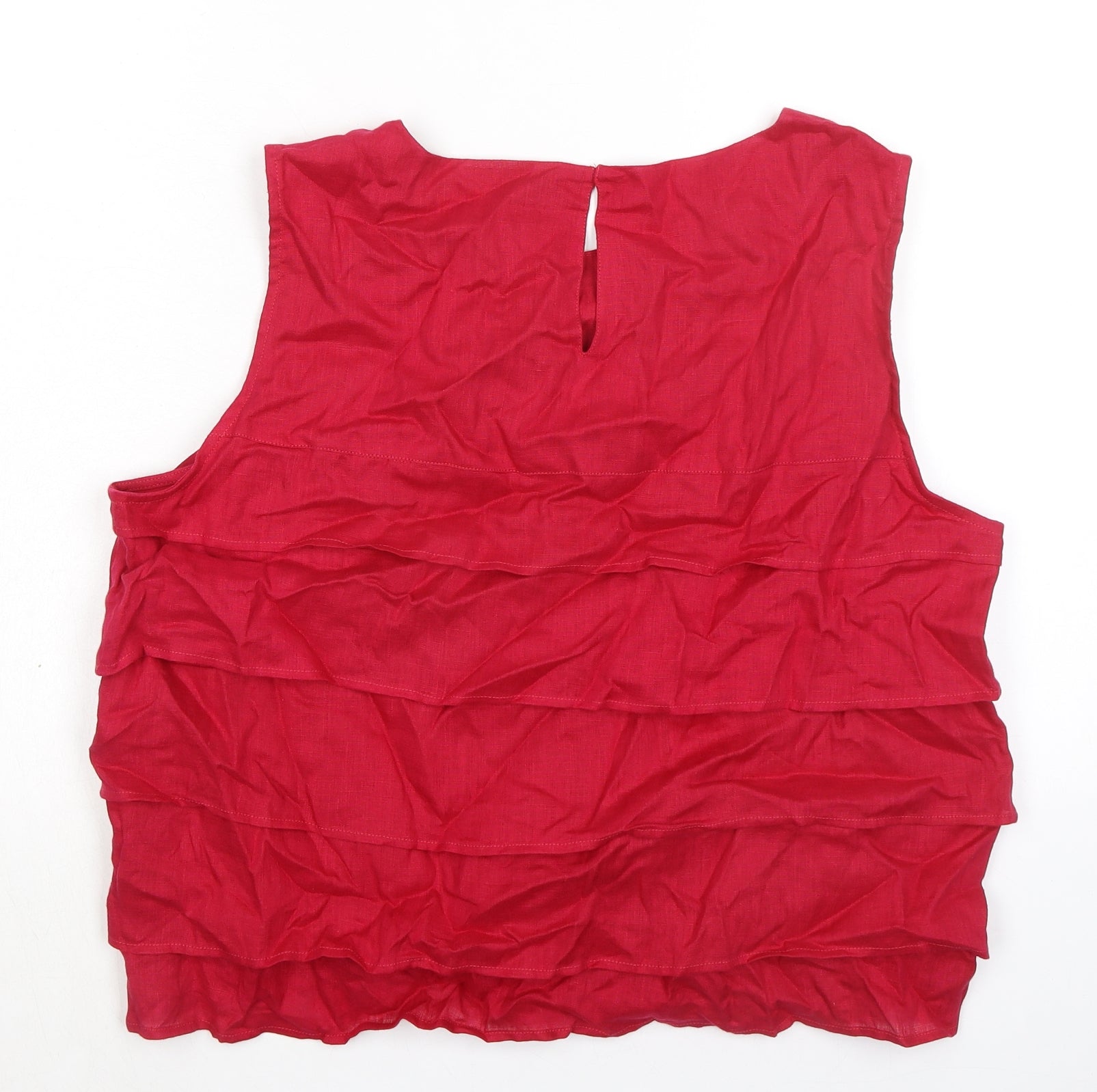 Womens Pink Linen Basic Blouse Size 16 Boat Neck