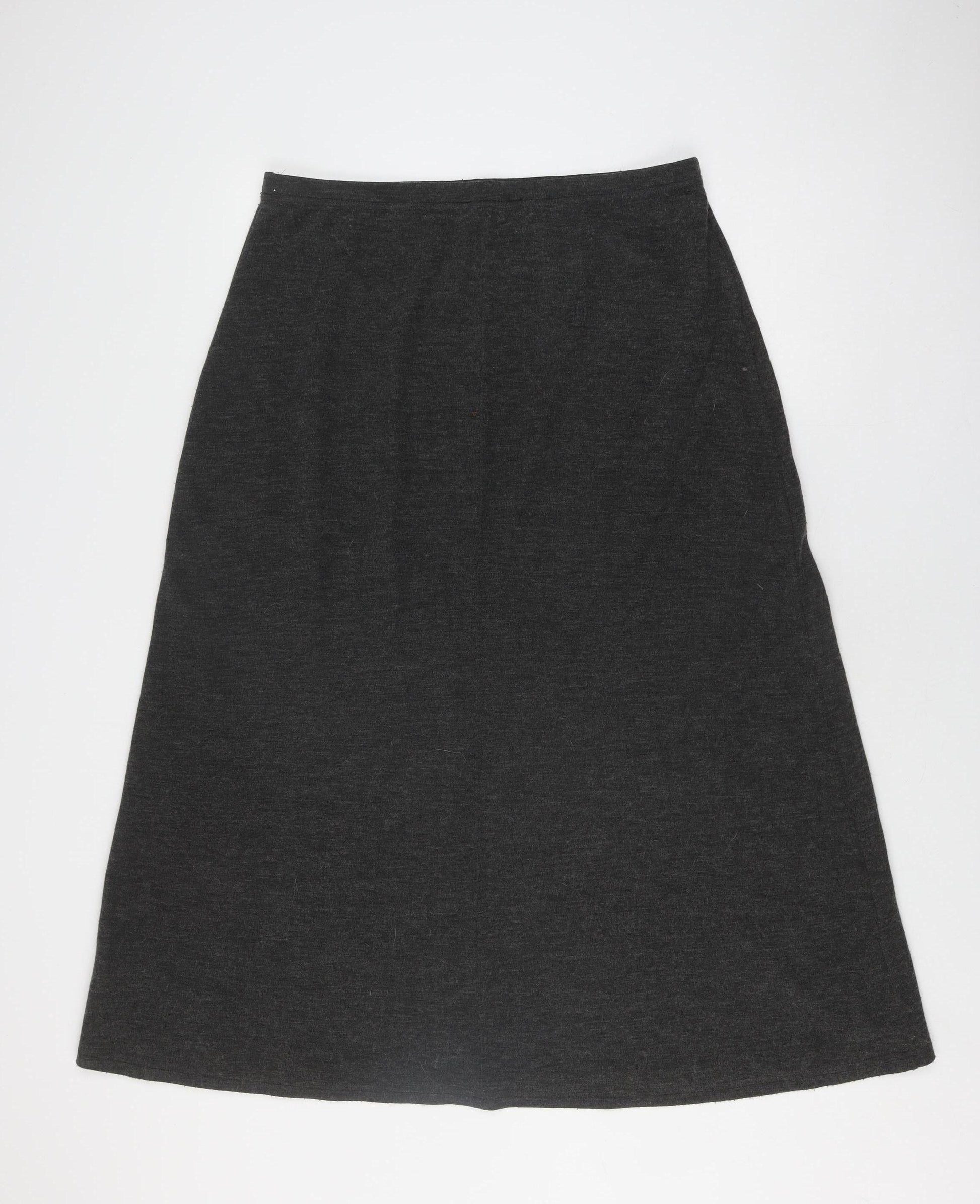 Add a touch of sophisticated elegance to your wardrobe with this classic pencil skirt by Jake, tailored for women who appreciate timeless style. This grey knee-length skirt is meticulously crafted from a luxurious blend of acrylic and wool, ensuring both warmth and comfort throughout the seasons. Its mid-rise design provides a flattering silhouette, while the subtle knit fabric adds texture without overwhelming your ensemble. Perfect for professional settings or an evening out, the skirt's sleek, straight cut pairs effortlessly with a variety of tops and footwear. Embrace a no-pattern design for versatility in styling, allowing you to accessorise according to your personal taste. Despite being in excellent condition, this skirt has been gently pre-owned, offering a sustainable choice for fashion-conscious individuals. Elevate your wardrobe with this essential piece and enjoy its enduring charm in countless outfits.