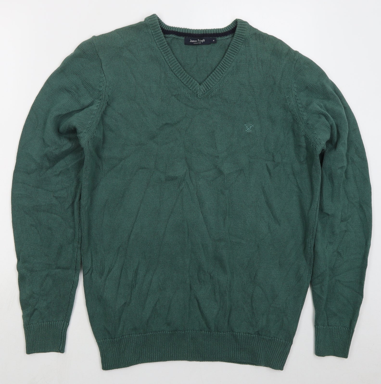 Mens Green V-Neck Cotton Pullover Jumper Size M