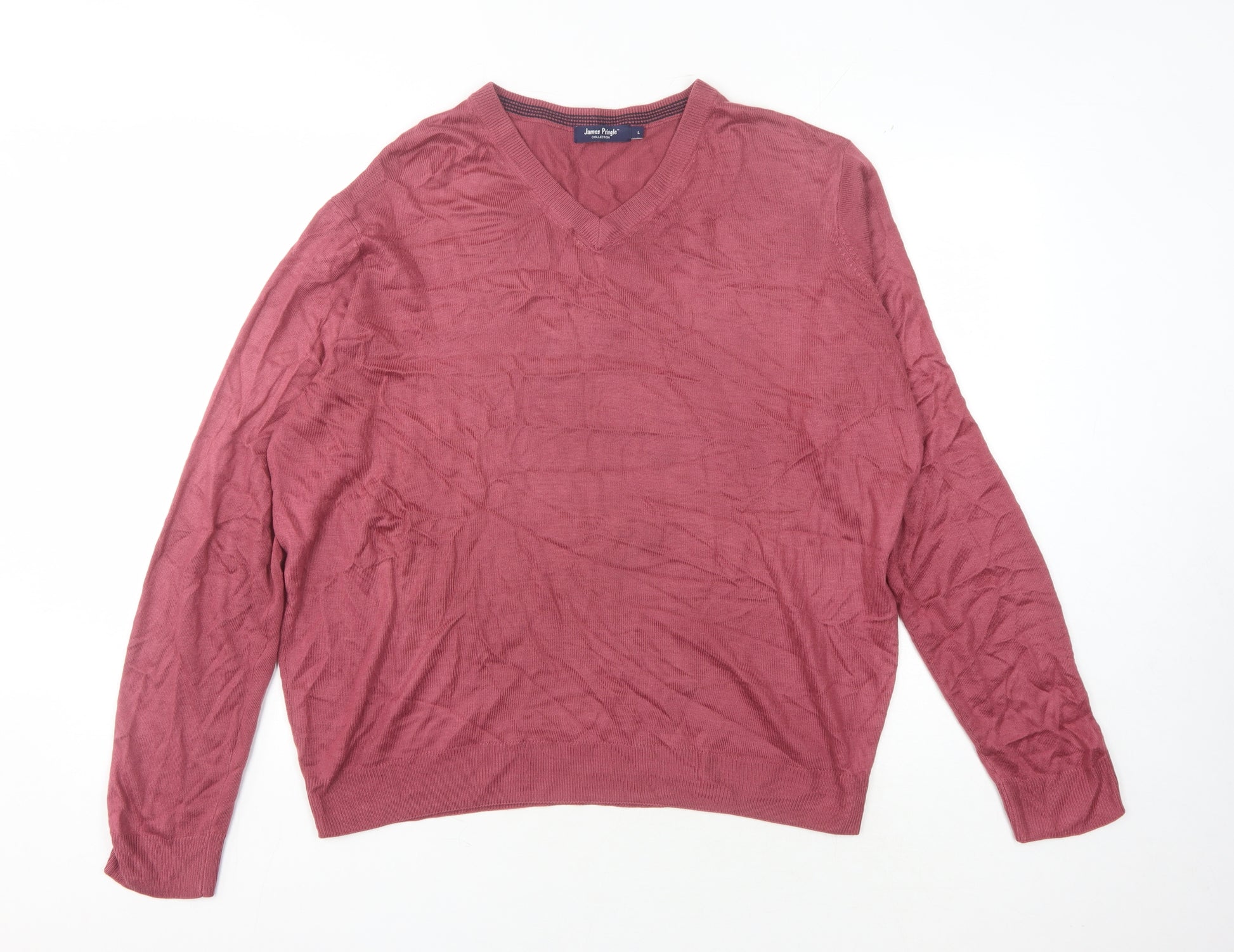 Elevate your wardrobe with this stylish and comfortable James Pringle men's jumper, perfect for casual outings or simply keeping warm during the autumn and winter months. Crafted with 100% acrylic, this pullover offers both warmth and comfort. The rich red colour adds a vibrant touch to your ensemble, and the V-neckline gives it a classic yet modern look.Designed for a regular fit, this jumper provides a relaxed feel, making it a versatile choice for various occasions. Its long sleeves and timeless design make it an ideal choice for layering over a shirt or tee. Whether you're heading to a casual lunch or a relaxed evening out, this jumper adds a touch of class and comfort.The knit fabric is soft on the skin, ensuring all-day comfort. While the fabric shows slight wrinkles, it remains in excellent condition, showing minimal signs of wear. It's a great option for anyone seeking a reliable and stylish addition to their cold-weather wardrobe.Pair this James Pringle jumper with jeans for a relaxed look or dress it up with chinos for a more polished appearance. This red V-neck pullover not only enhances your style but also provides the functionality needed for those cooler days.Grab this versatile piece and enjoy the blend of fashion and comfort, making every outfit standout with ease.