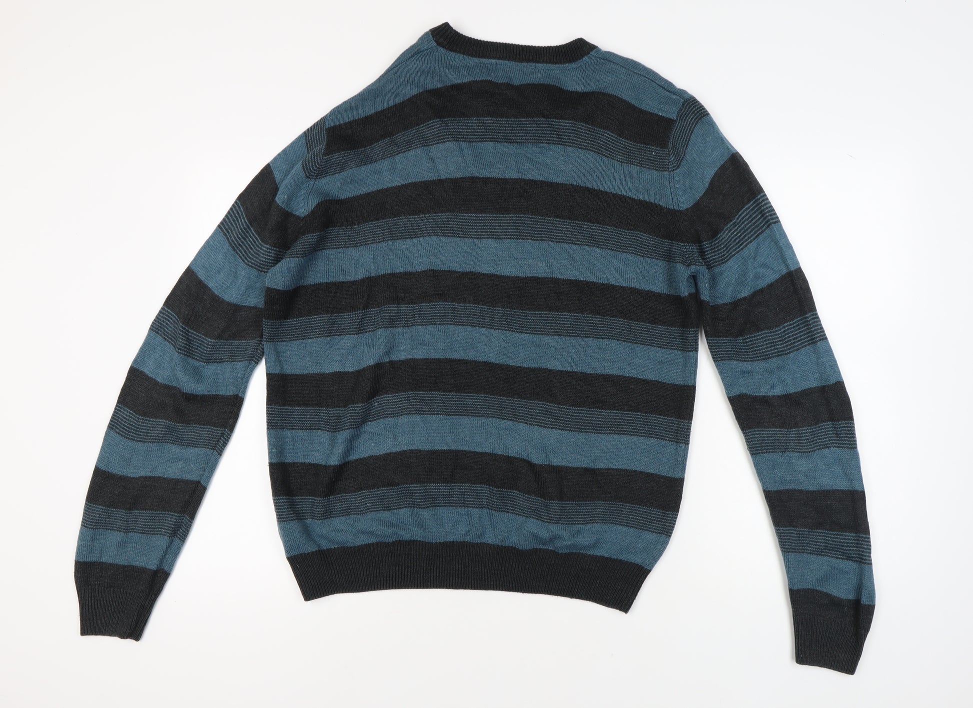 Regular price£14.25£1425Regular priceUnit price / perSale price £14.25 GBPZara Man Blue Striped Cotton V-Neck Jumper XL Regular Fit