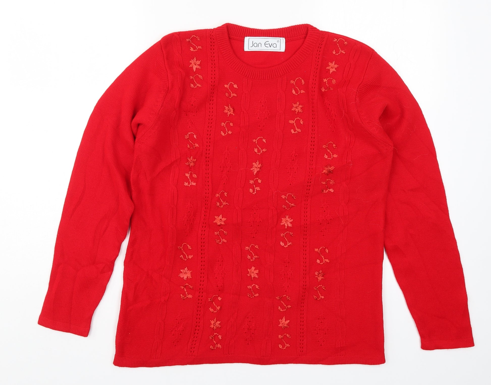 David Emanuel Womens Red Chunky Knit 3/4 Sleeve Jumper Size M