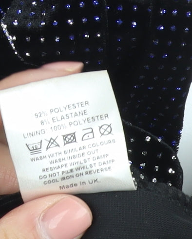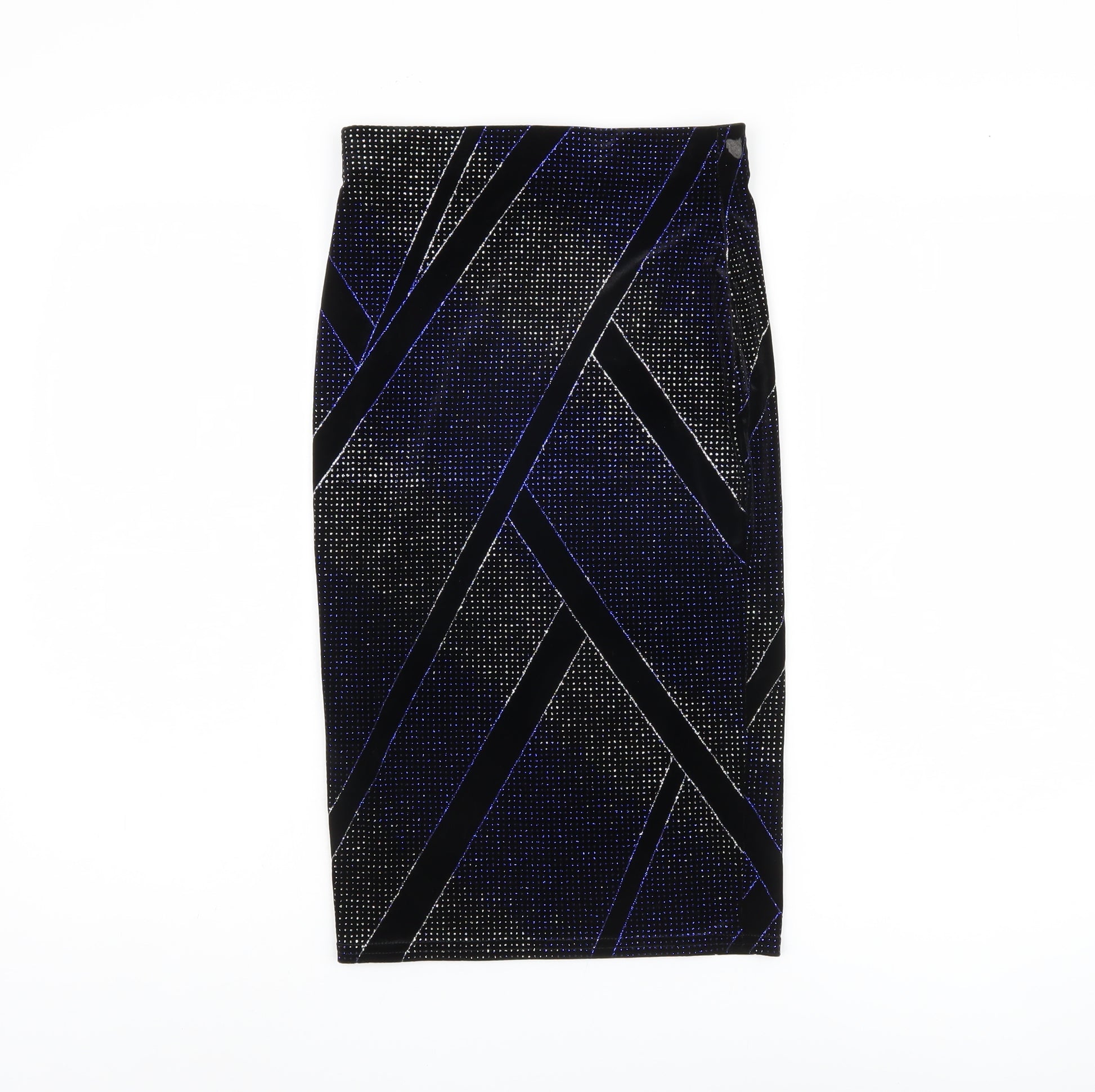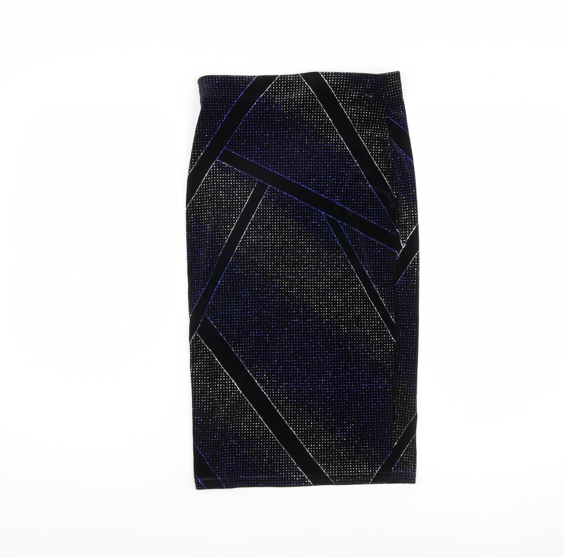 Elevate your wardrobe with this striking black geometric pencil skirt from the renowned brand Jane Norman. Designed specifically for women, this skirt is perfect for party or cocktail occasions. Its modern straight and pencil style offers a sleek silhouette that flatters your figure, while the geometric pattern adds a trendy touch. Made from a high-quality blend of 92% Polyester and 8% Elastane, it promises both comfort and durability. In excellent condition with no visible signs of wear, this skirt is ideal for any season. Pair it with a chic blouse and heels for a night out, or a relaxed top for a more casual look. Don't miss the chance to own this stunning piece at a fantastic value.