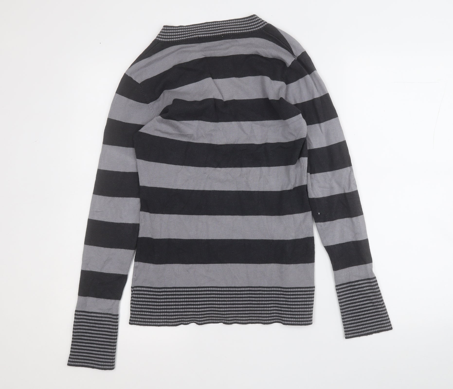 Womens Grey V-Neck Striped Viscose Pullover Jumper Size 14
