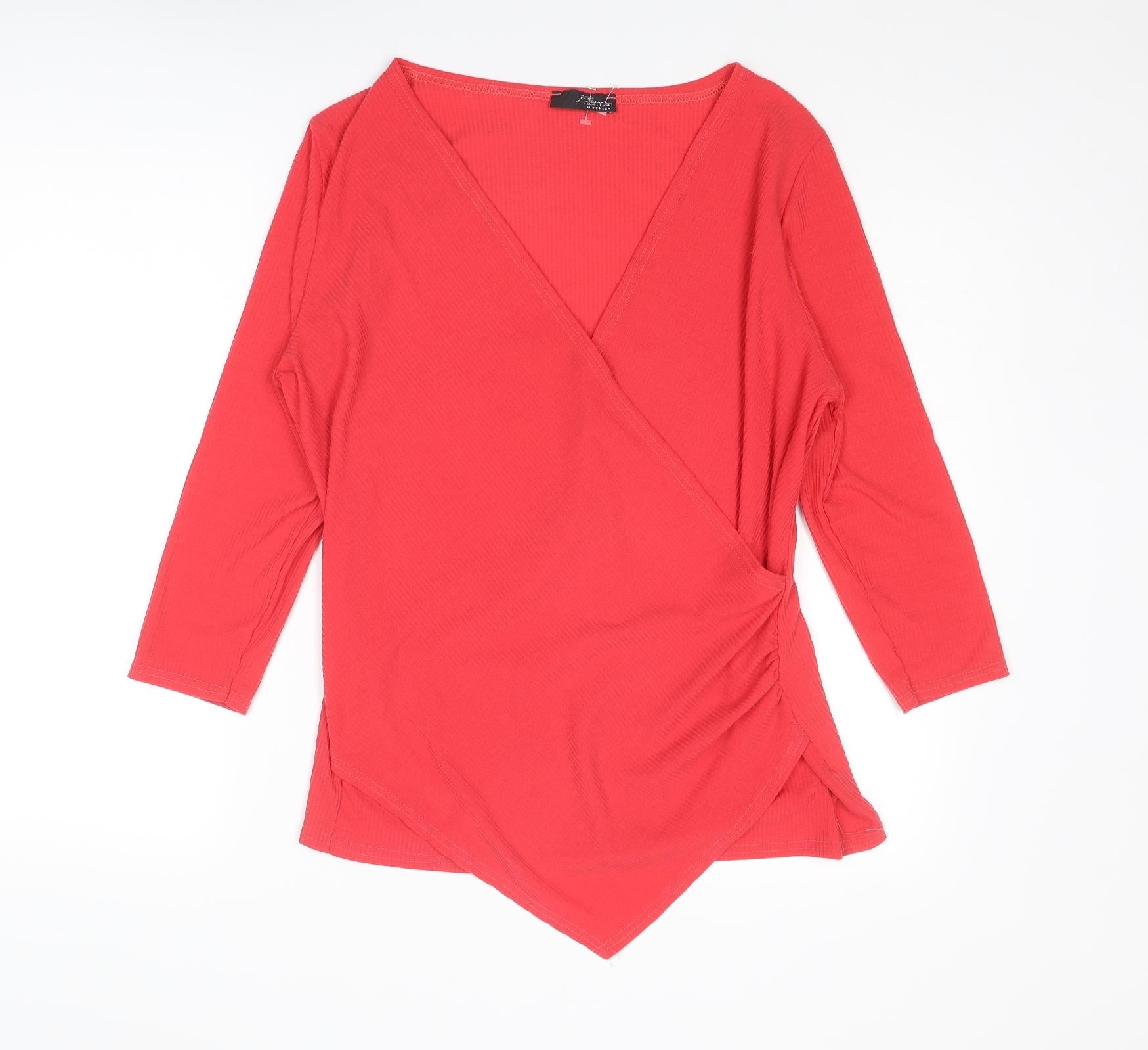 Womens Red Polyester Basic T-Shirt Size 18 V-Neck