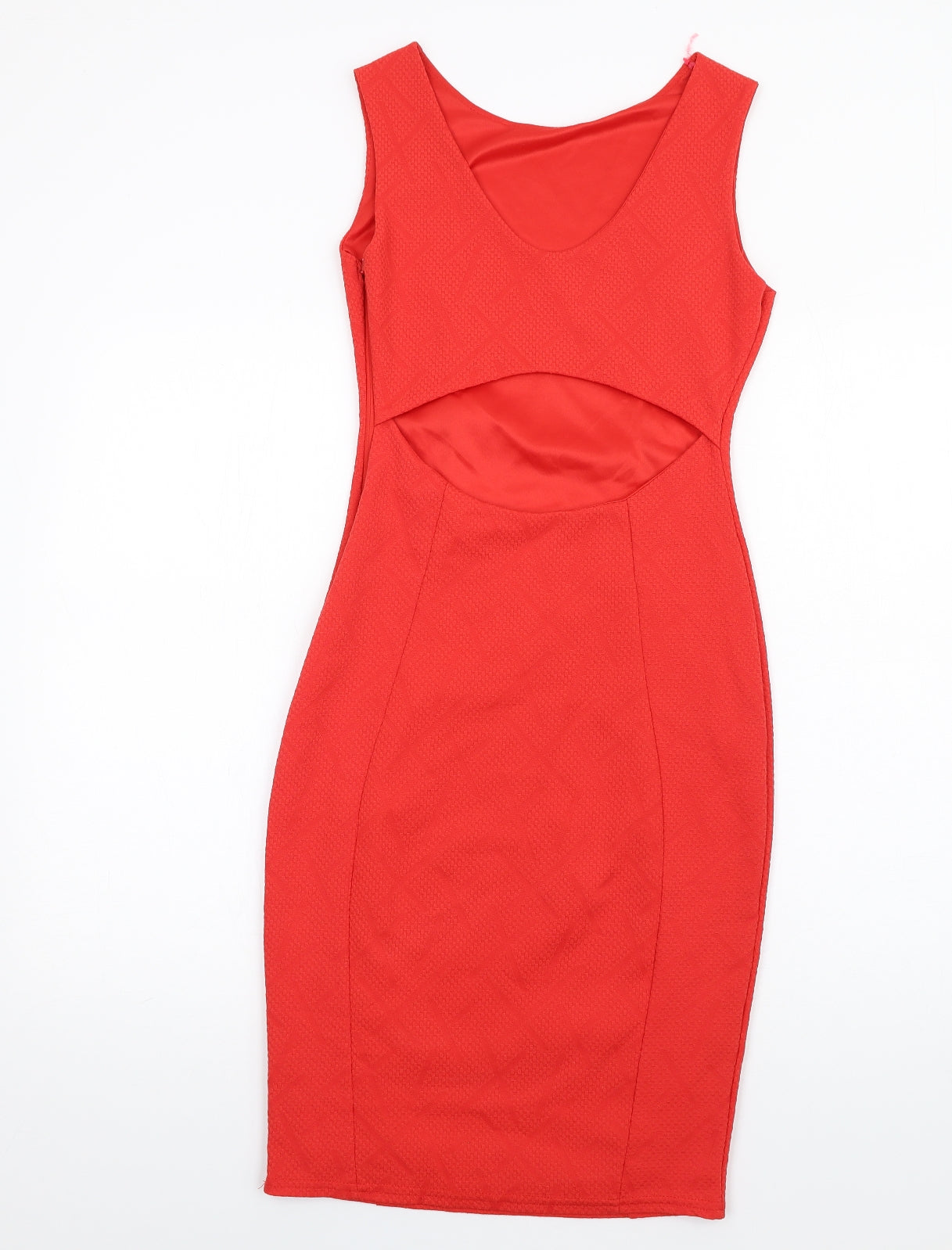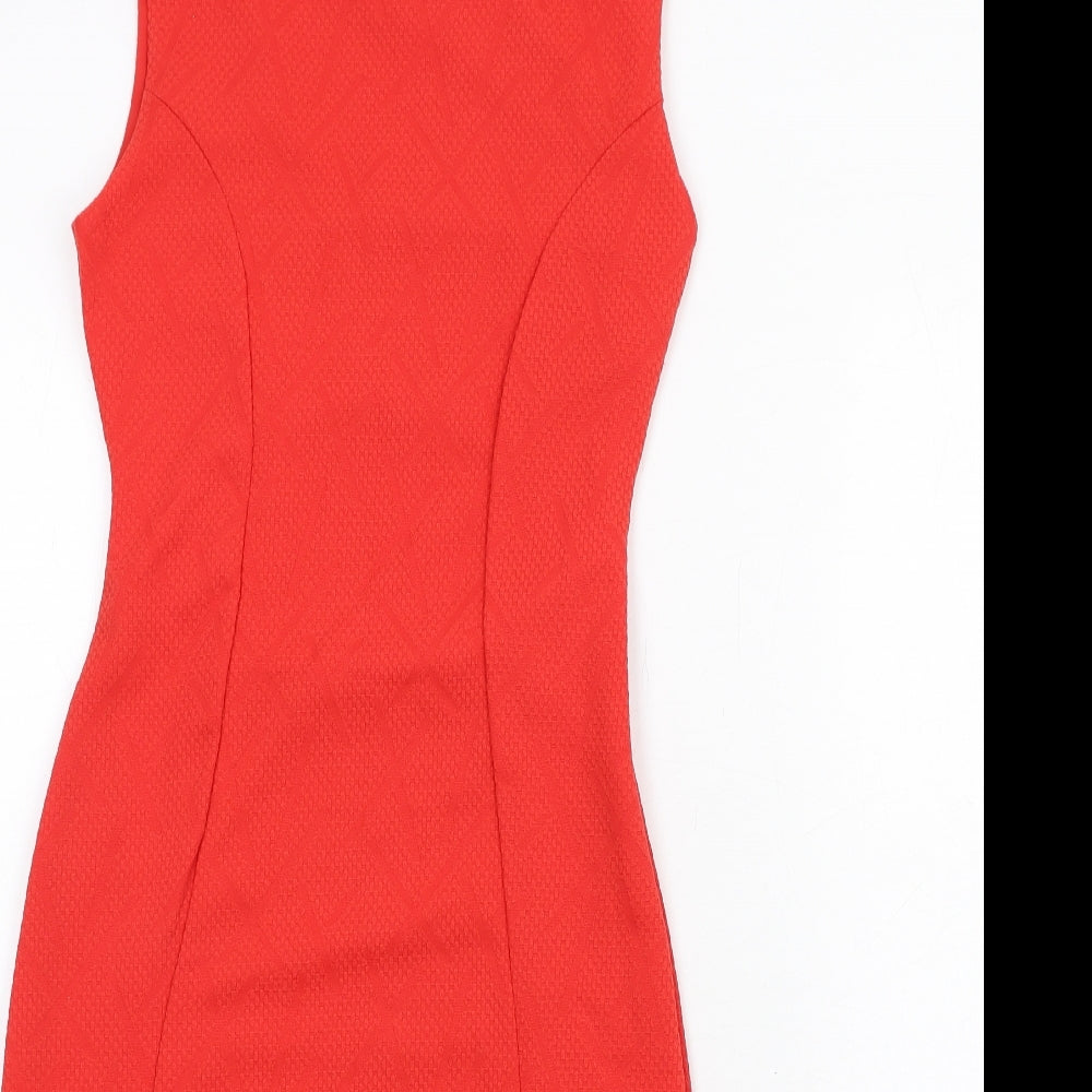Womens Red Polyester Bodycon Size 10 Round Neck Zip