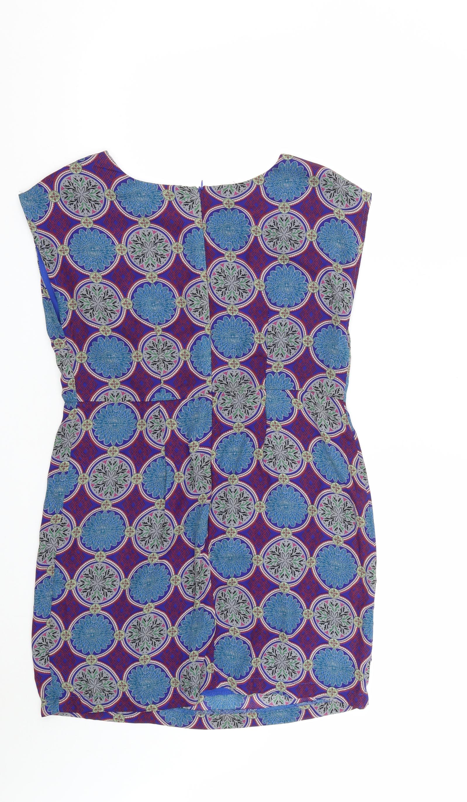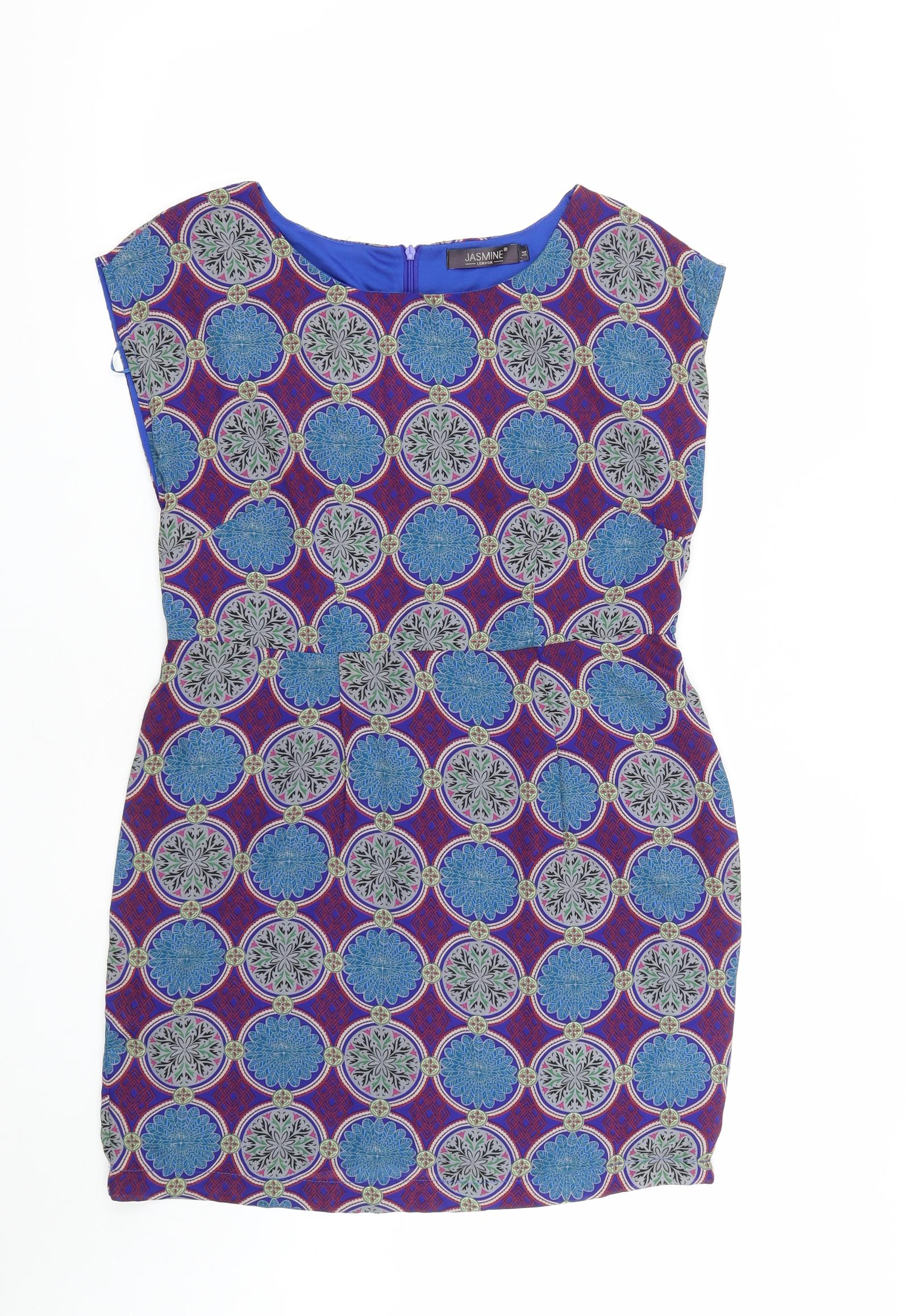 Womens Multicoloured Geometric Polyester A-Line Size 14 Round Neck Zip