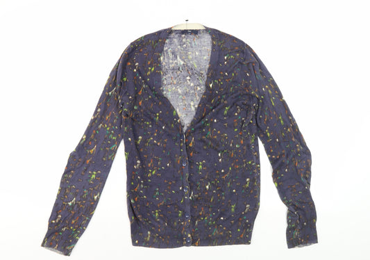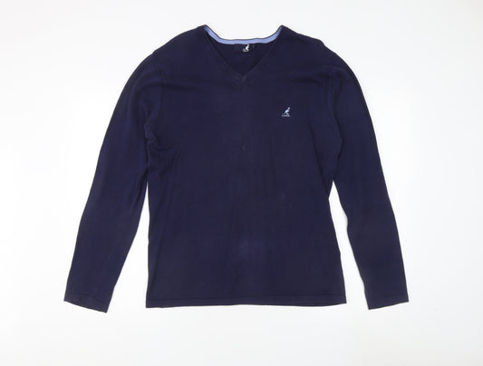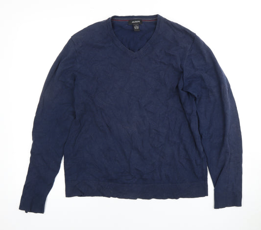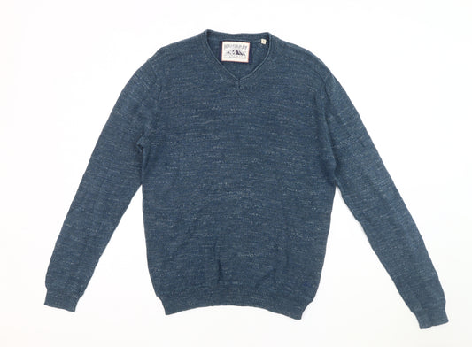 WoolOvers Men's Blue V-Neck Cotton Cashmere Jumper Size S