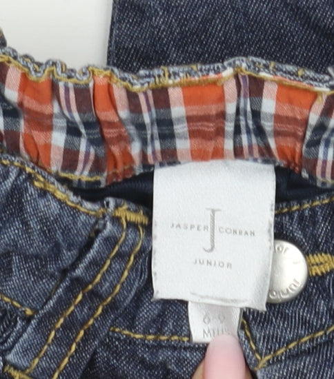 These charming Jasper Conran cargo trousers are ideal for your little adventurer. Crafted in a durable denim fabric, these cotton trousers are perfect for playtime. The practical design includes an elastic waistband for easy dressing and comfortable wear. Original button closure gives an authentic cargo style, complemented by the functional side pockets. Tailored for boys aged 6 to 9 months, these trousers offer a relaxed fit that is perfect for active babies. Paired with a casual shirt or t-shirt, they provide a versatile option for both indoor and outdoor play during the warmer months of spring and summer. In excellent pre-loved condition, these trousers have no visible stains or rips, ensuring a fresh look. Although missing original tags, the trousers maintain a clean and crisp appearance, making them a fantastic addition to your baby’s wardrobe. Machine washable for easy care, these trousers are both stylish and practical, ready to support your little one's adventures.