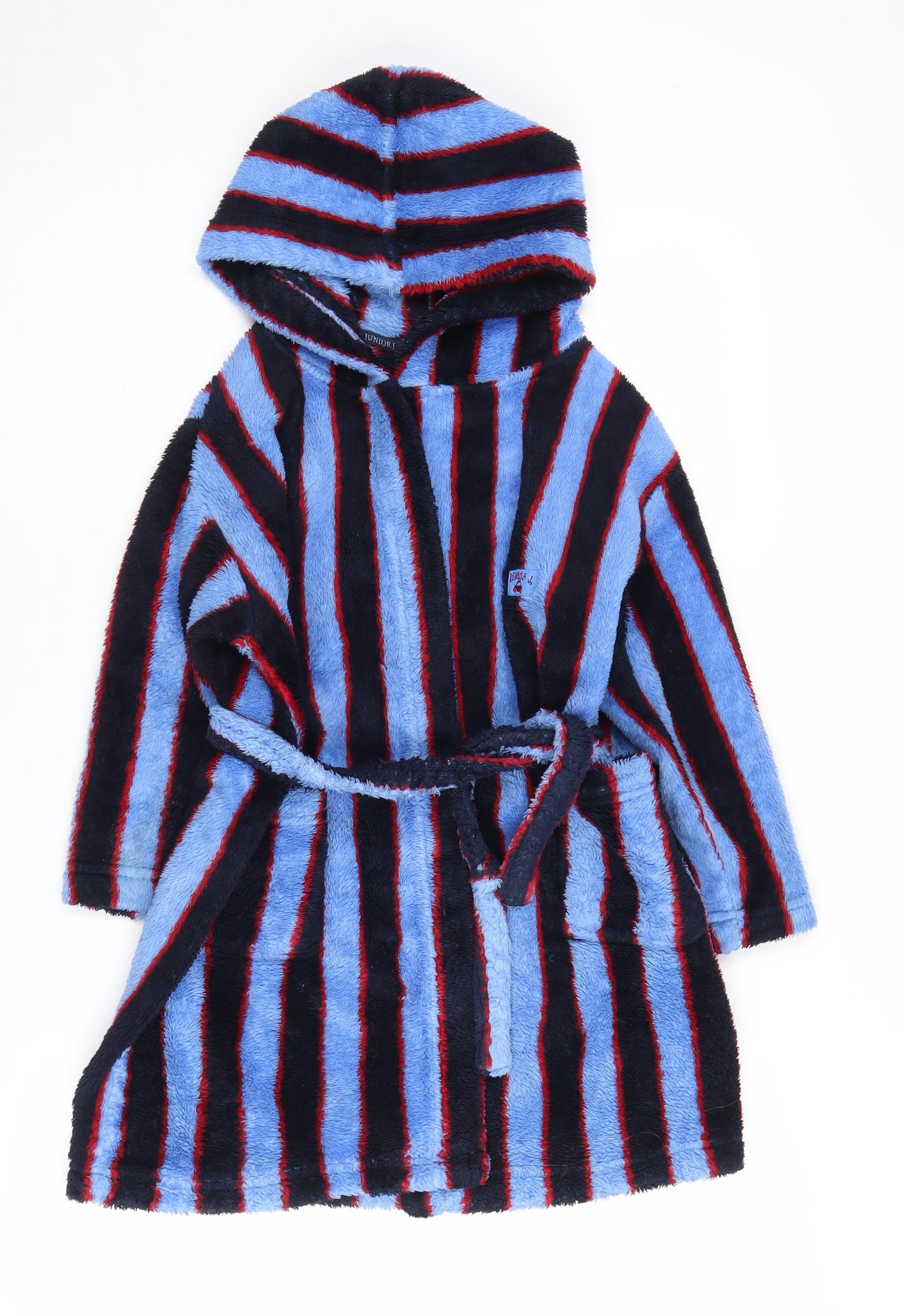 Delight in comfort and style with this charming Jasper Conran Boys Robe, perfect for young adventurers aged 6-7 years. Crafted from a supremely soft Polyester fleece, this hooded robe offers cosy warmth ideal for all seasons. The striking blue and black stripes add a dash of fun, while the long sleeves and tie closure ensure a snug fit. Thoughtfully designed for everyday ease, it is machine washable, making it a practical addition to your child's nightwear collection. With a playful yet classic design, it's an excellent choice for lounging or bedtime, ensuring your little one stays comfortable and stylish. Buy now and add a touch of luxury to their nightwear.