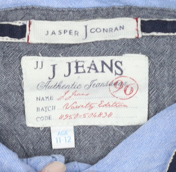 Elevate your child's wardrobe with this stylish Jasper Conran pullover. Tailored for boys aged 11-12, this top combines a classic blue hue with a striking striped design, perfect for any casual occasion. The shirt's long sleeves and button-down collar lend a sophisticated touch, while the comfortable pullover style ensures easy wear. Crafted from a premium blend of 99% cotton and 1% polyester, it promises comfort with every wear. Ideal for spring and autumn, this versatile piece is machine washable, making it easy to care for. Whether for school or a weekend outing, this top is the perfect addition to any young wardrobe. Add this Jasper Conran pullover to your shopping bag today and let your child enjoy timeless style.