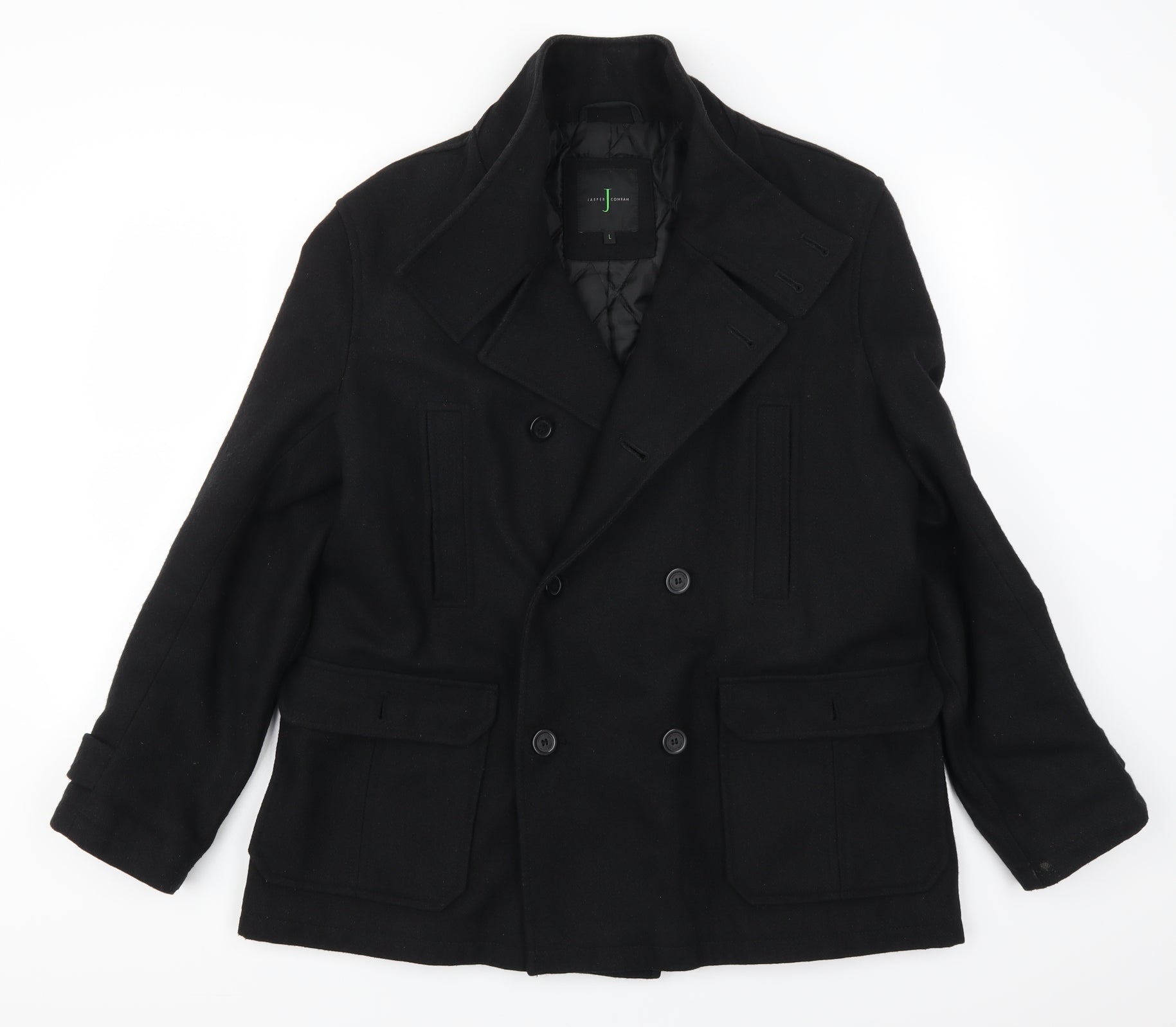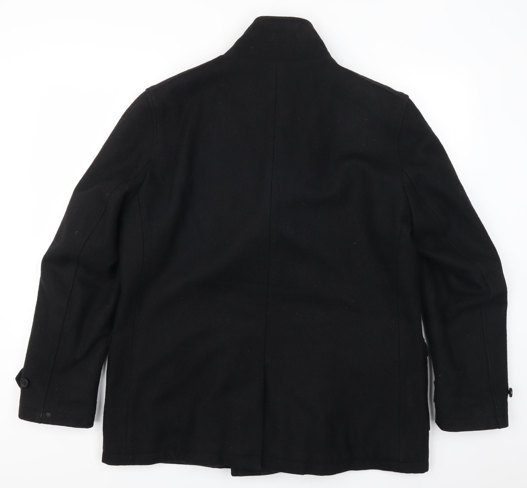 Burton Menswear London Men's Black Wool Blend Pea Coat L