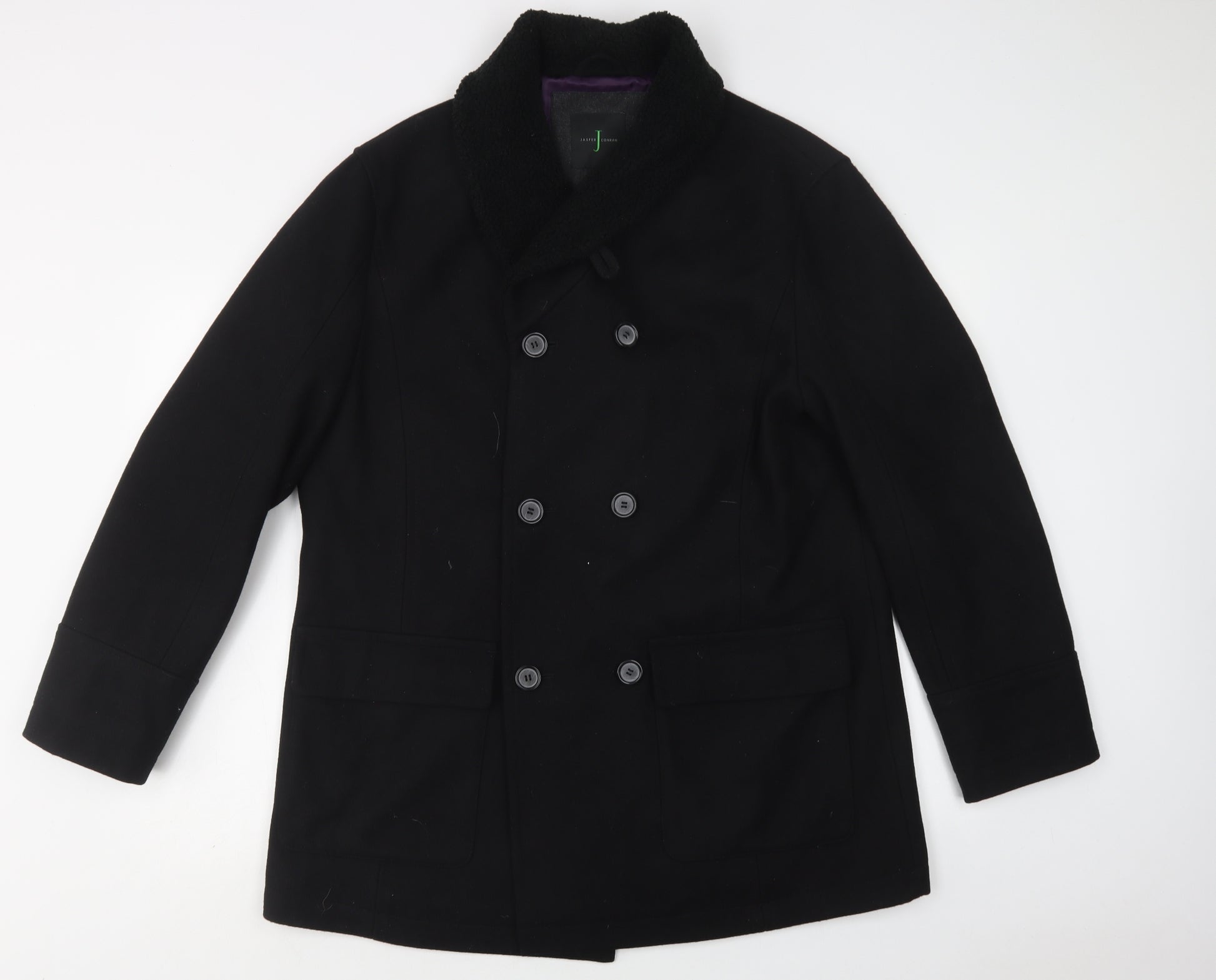 Burton Menswear London Men's Black Wool Blend Pea Coat L