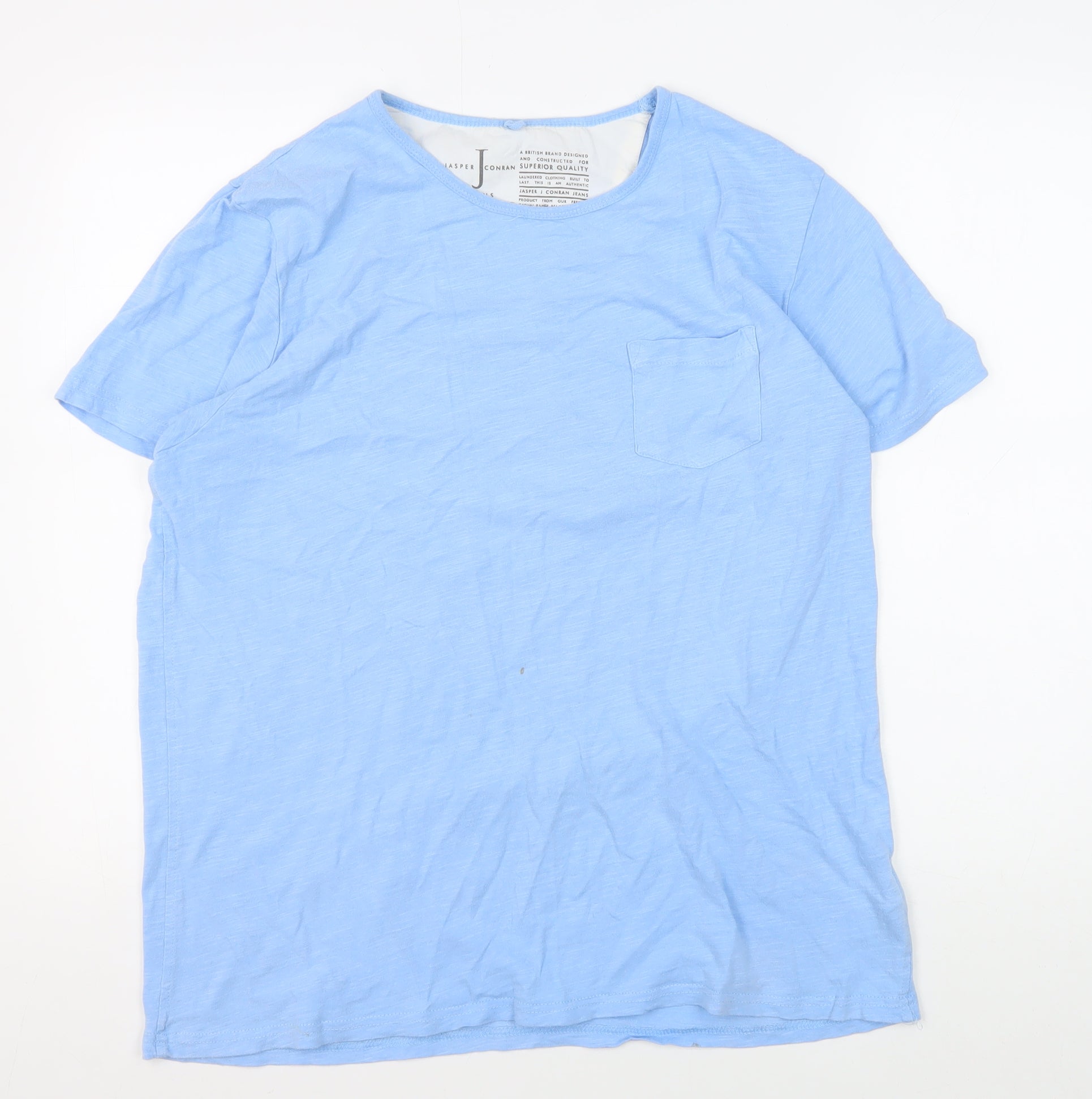 Discover the perfect blend of comfort and style with this Jasper Conran Men's Blue Cotton T-Shirt. Crafted from 100% cotton, this breathable piece offers a relaxed fit, designed for everyday ease. The short sleeve design with a classic crew neck complements any casual wardrobe, making it a versatile staple for any outing. This solid blue t-shirt fits consistently with a regular size type, providing an excellent choice for those who seek simplified yet trendy attire. Machine washable for easy garment care, this t-shirt embodies both practicality and durability. Manufactured in the 2020-2029 period, it remains in excellent condition, with only minor signs of wear that are barely noticeable. Lightly wrinkled, it can be easily ironed for a pristine appearance. Suitable for all seasons, this t-shirt works effortlessly for casual errands, relaxed lunch dates, or lounging at home. It's jersey fabric allows for a soft feel against the skin, promising ultimate wearability throughout the year. Elevate your everyday wear with this simple yet refined Jasper Conran T-shirt, and experience a true enhancement to your personal style. Whether you’re dressing down for the weekend or adding to your casual collections, this piece is sure to catch the eye.