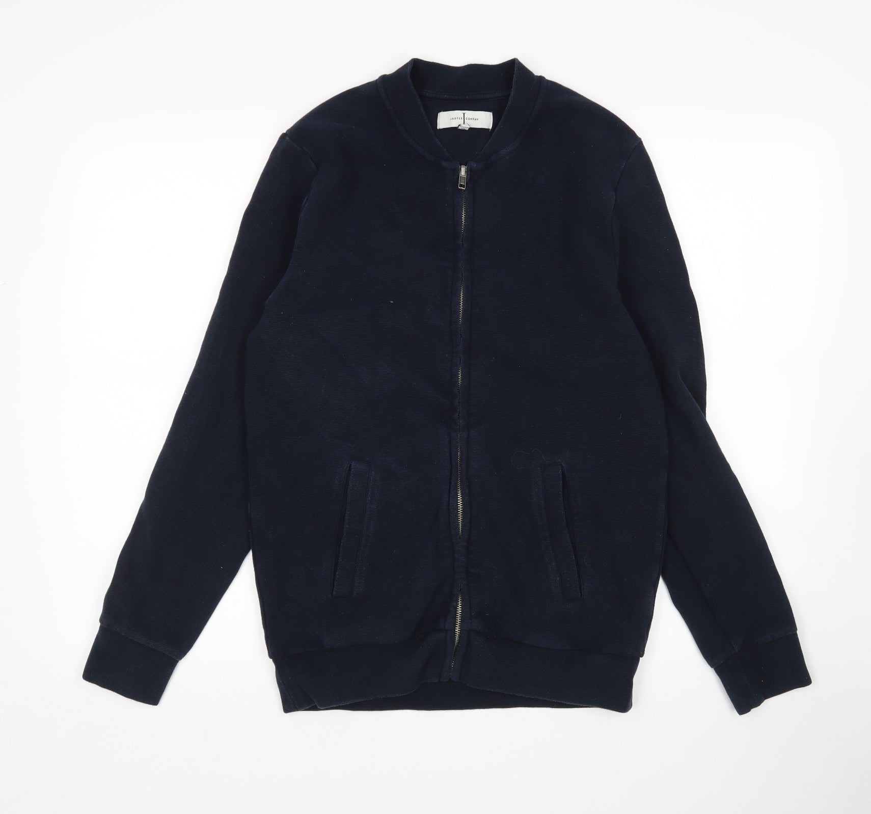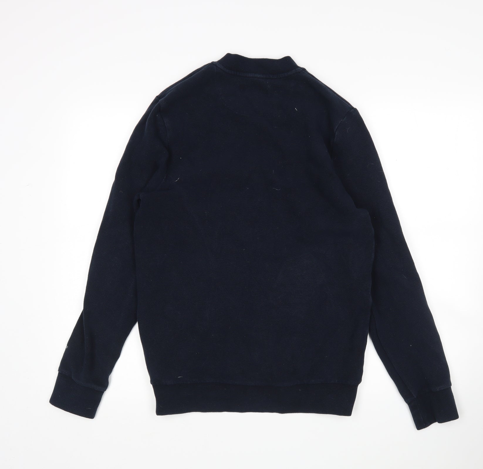 Mens Blue Round Neck Cotton Full Zip Jumper Size S