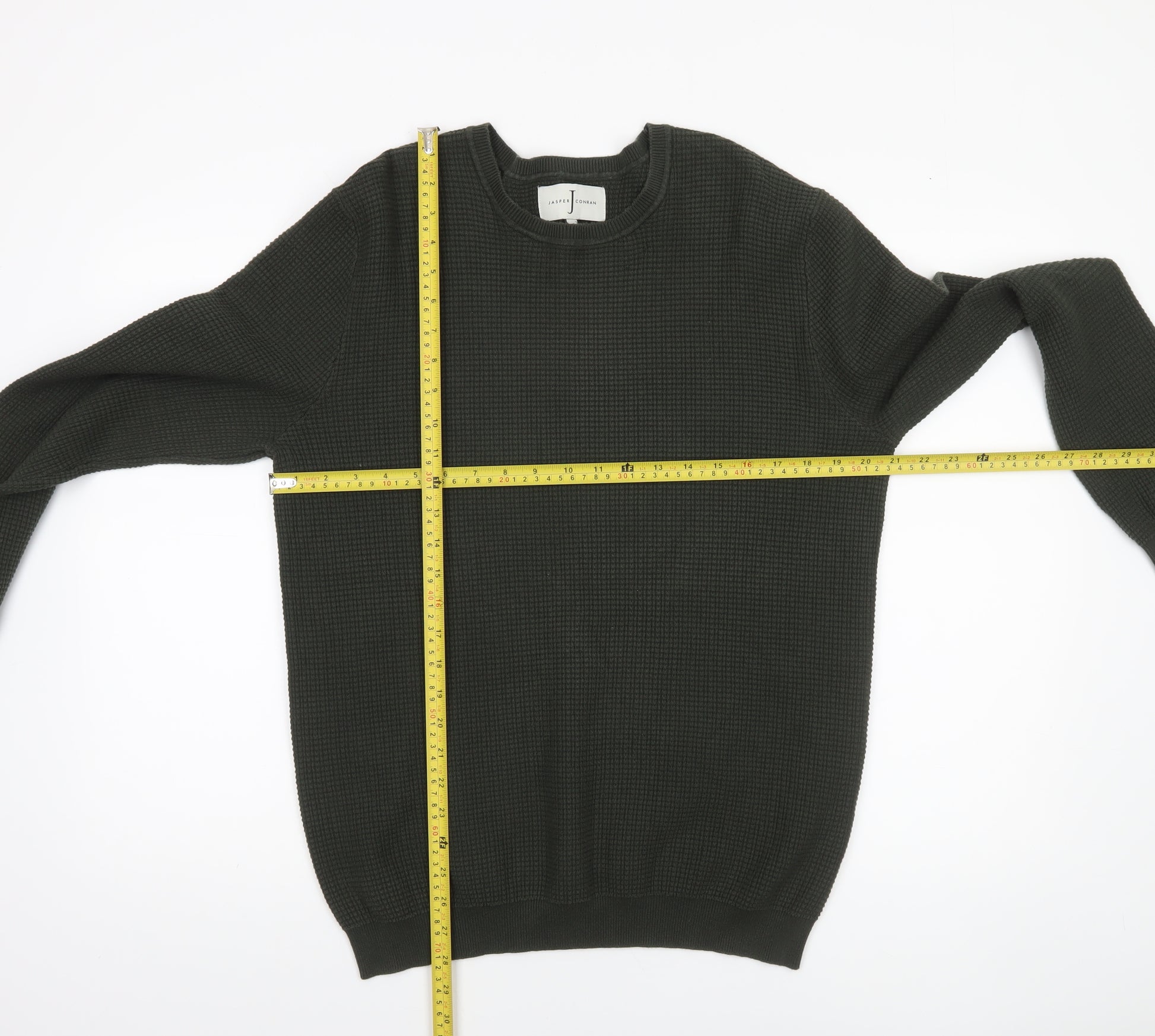 Elevate your cold-weather wardrobe with this premium men's jumper from Jasper Conran. Expertly crafted from a soft blend of 81% cotton and 19% nylon, this jumper combines comfort, durability, and timeless design. The rich green colour adds understated sophistication, making it a versatile piece ideal for both smart-casual occasions and everyday wear. Featuring a waffle-knit texture, it provides lightweight warmth with a breathable feel, perfect for layering over shirts or under jackets throughout autumn and winter. The classic crew neckline and ribbed cuffs and hem offer a secure, flattering fit that maintains its shape wear after wear. Designed for the modern man who values effortless style and quality craftsmanship, this regular fit jumper complements jeans, chinos, and tailored trousers alike. Whether worn for work, weekend outings, or relaxed evenings, it delivers a polished, confident look. Machine washable for easy care, this jumper combines practical wearability with refined appeal. In excellent pre-owned condition, showing no visible signs of wear or damage, it represents exceptional value for a premium wardrobe essential. Add a touch of Jasper Conran sophistication to your collection and enjoy a versatile jumper that seamlessly balances contemporary elegance with classic British menswear styling. Ideal for those seeking a reliable and stylish knitwear option that transitions smoothly across seasons while maintaining comfort, form, and effortless charm—this piece offers everything you need for a refined yet relaxed aesthetic.