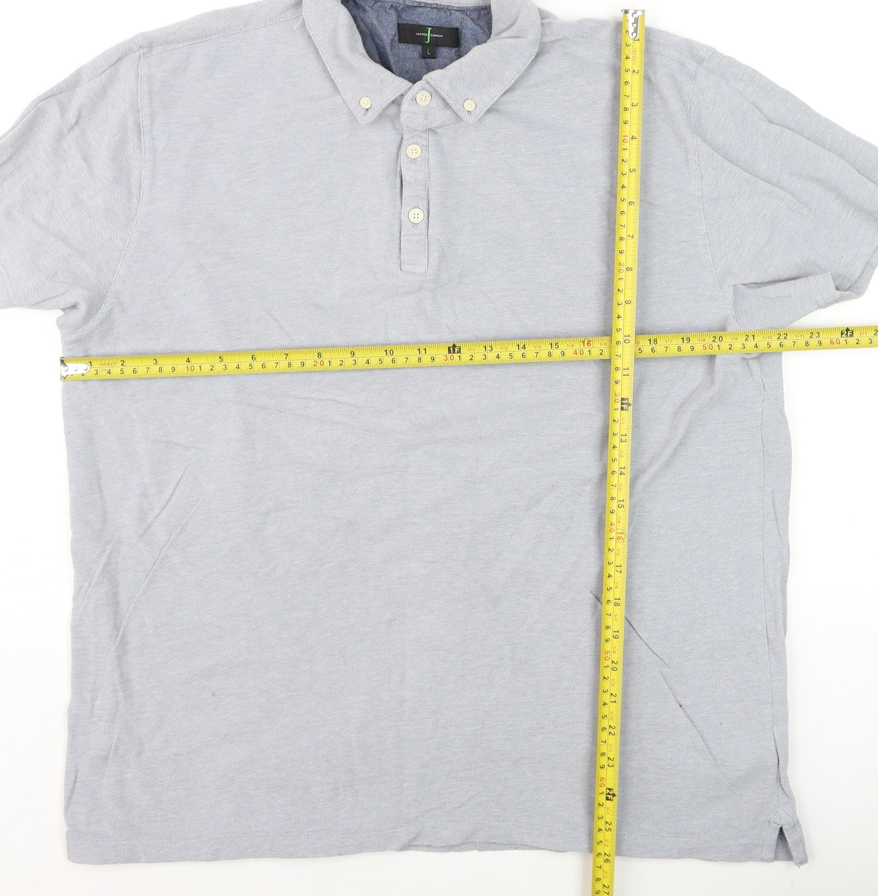 Add a touch of effortless sophistication to your casual wardrobe with this Jasper Conran men’s grey collared T-shirt. Designed in a timeless button-up polo style, it strikes the perfect balance between comfort and refinement, making it ideal for everything from weekend outings to smart-casual gatherings. The soft cotton jersey fabric ensures breathability and lasting comfort, while the button-down collar offers a polished finishing touch that elevates your everyday look. Its understated solid grey colour allows easy pairing with denim jeans, chinos, or shorts for a laid-back yet stylish aesthetic. The lightweight material and short sleeves make it perfect for the warmer seasons, offering freedom of movement and a relaxed fit for all-day wear. Manufactured with attention to detail, this T-shirt maintains Jasper Conran's commitment to quality craftsmanship and simple sophistication. The breathable fabric and regular fit make it suitable for men who appreciate effortless versatility and comfort without compromising on style. Ideal for the Summer months, it comes in very good pre-owned condition with only minor signs of natural wear, adding a subtle lived-in softness to the texture. Perfect for casual Fridays, holiday wear, or relaxing at home, this T-shirt provides an easy way to maintain a smart yet comfortable appearance. Pair it with loafers and tailored shorts for a clean, contemporary style or layer it under a light jacket for cooler evenings. This Jasper Conran grey collared T-shirt is a high-quality wardrobe essential that combines function, simplicity, and timeless appeal — a dependable choice for the modern man who values both comfort and understated elegance.