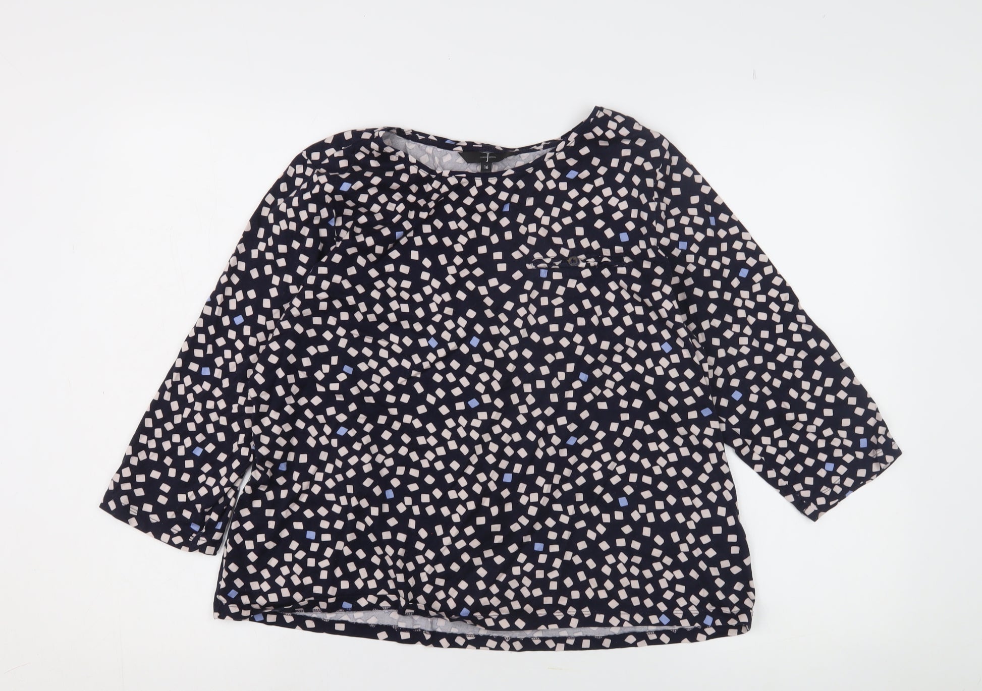 Elevate your wardrobe with this stylish Jasper Conran women's top, featuring a striking multicoloured geometric pattern that adds a touch of modern flair. Crafted from 100% cotton jersey fabric, this top ensures all-day comfort and breathability. The relaxed fit and boat neckline offer a flattering silhouette, perfect for any casual occasion. With 3/4 sleeves, it provides a versatile look that's ideal for layering or wearing on its own during transitional seasons. Pair it with your favourite jeans or a sleek skirt for an effortlessly chic outfit. Machine washable for easy care, this top is a practical addition to any fashion enthusiast’s collection. Whether you're heading out for a day of shopping or catching up with friends, this piece is sure to become a firm favourite in your rotation.