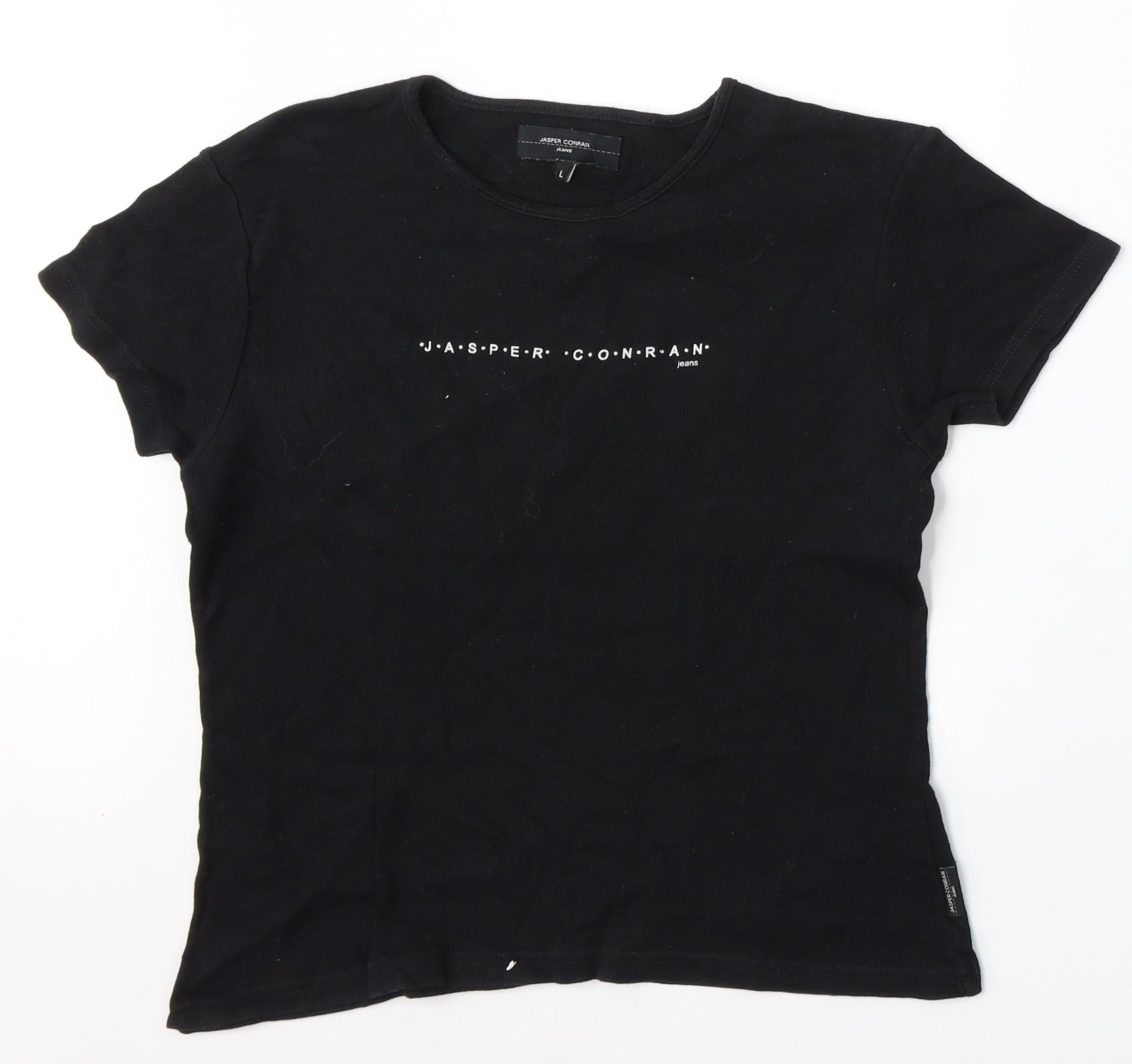 Womens Black Cotton Basic T-Shirt Size L Round Neck