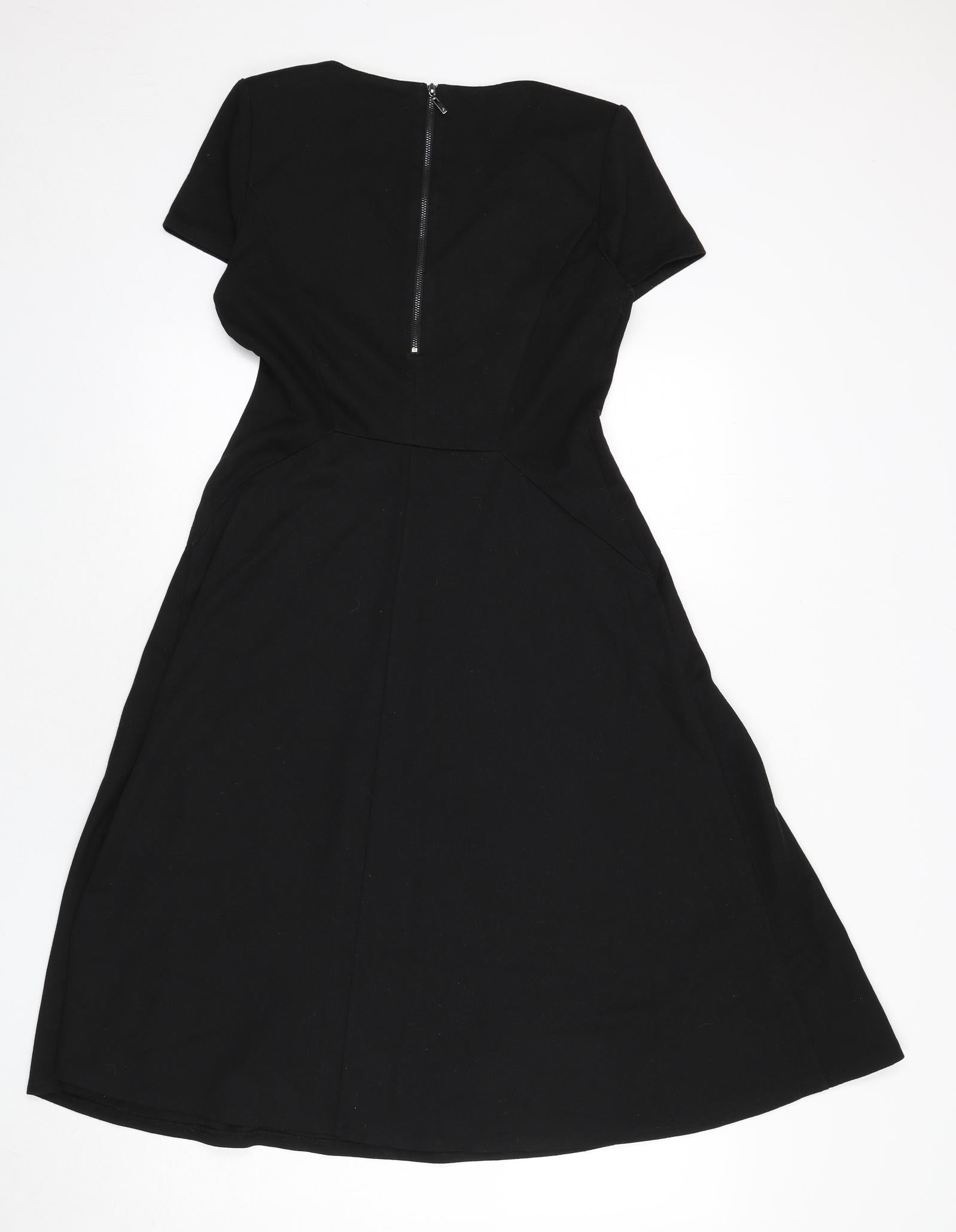 Womens Black Polyester Fit & Flare Size 14 V-Neck Zip