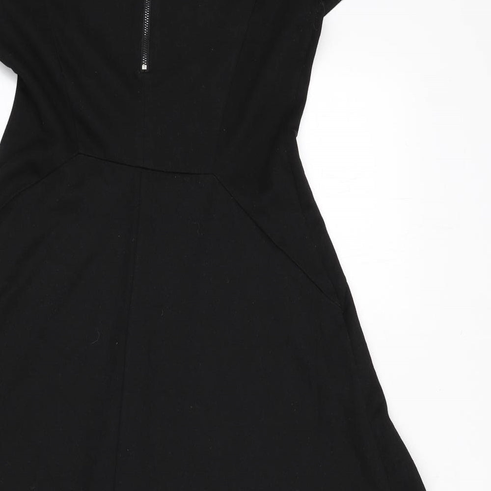 F&F Womens Black Striped Viscose Skater Dress Size 14 Round Neck Zip
