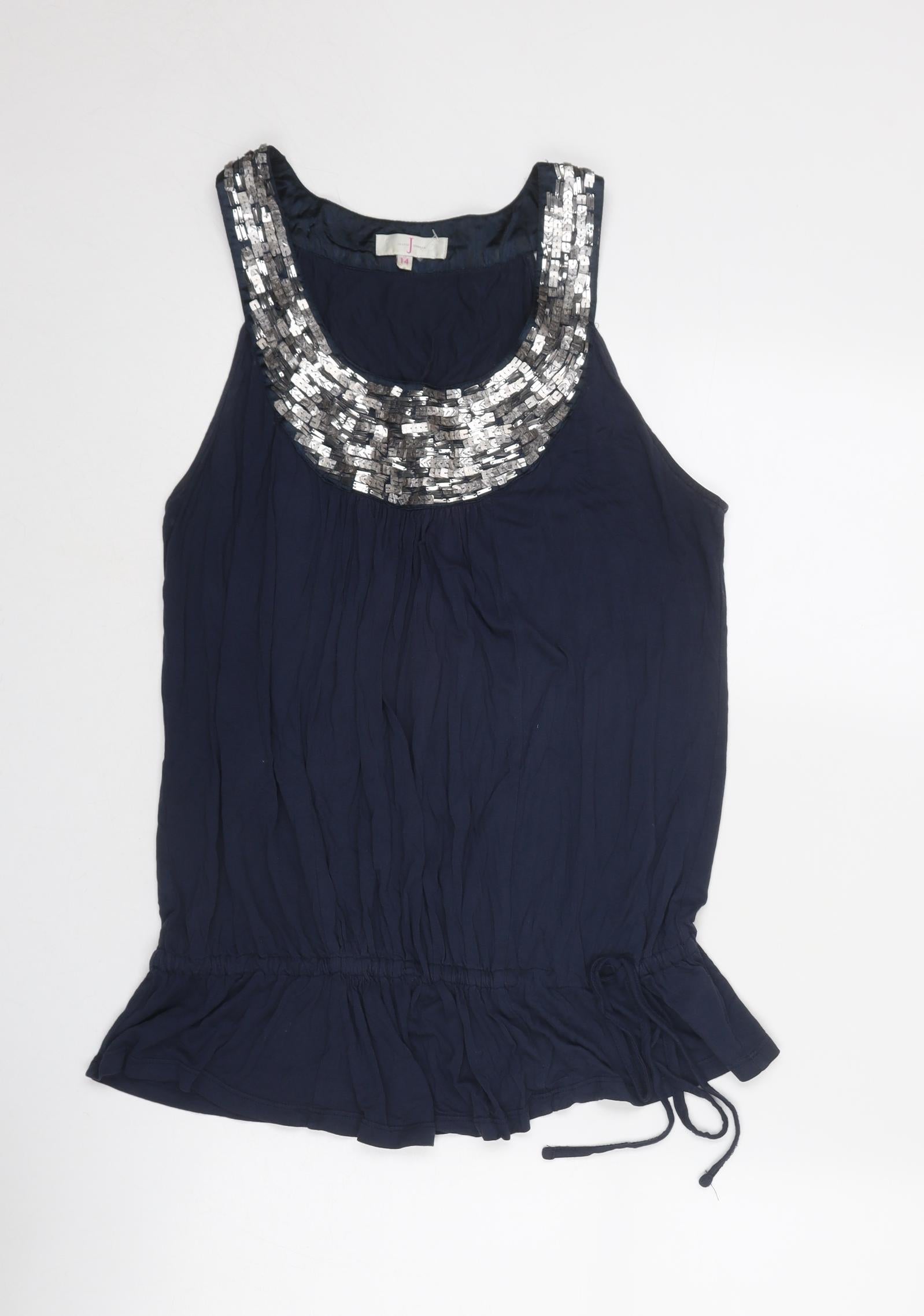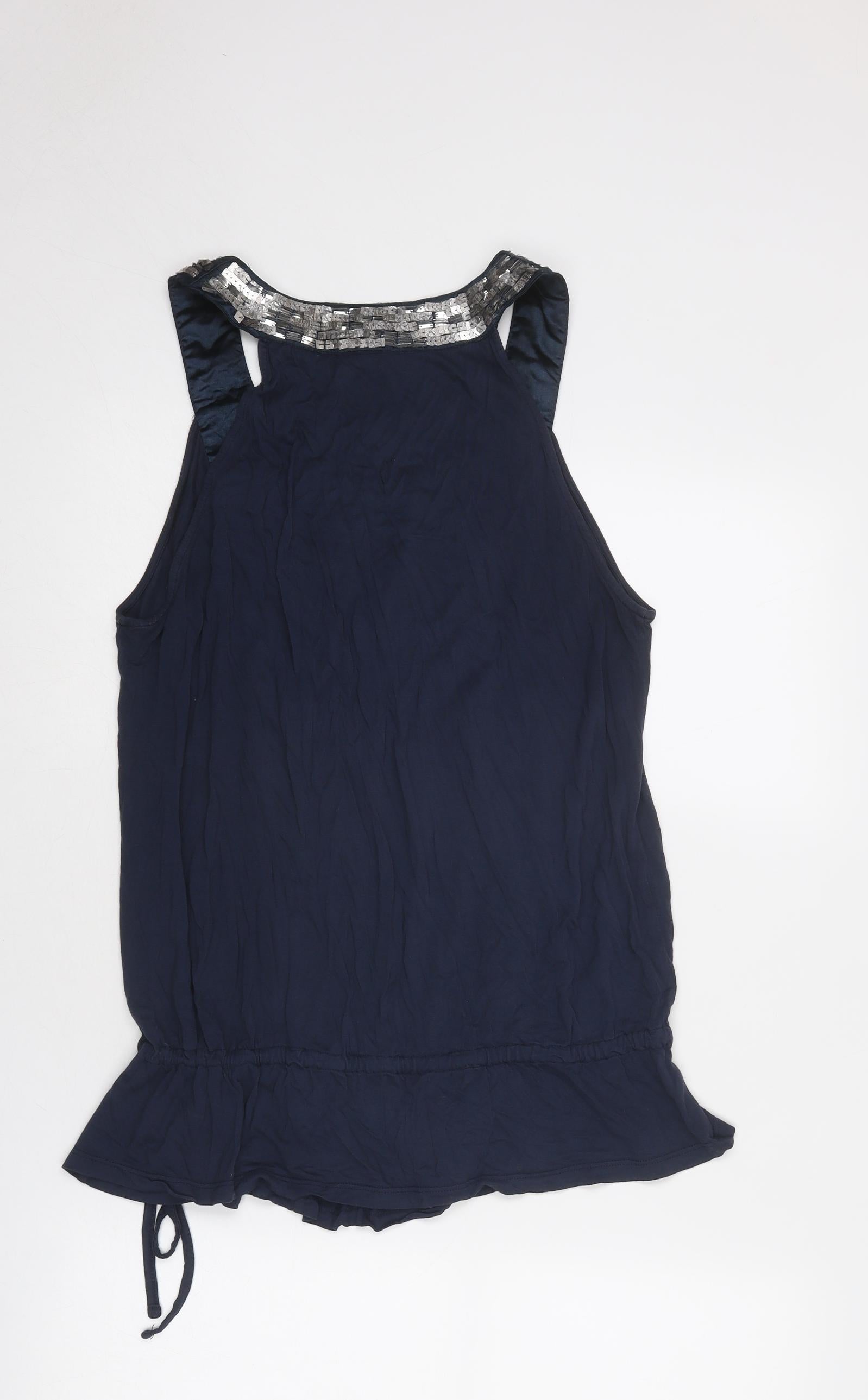 Womens Blue Viscose Basic Tank Size 14 Round Neck