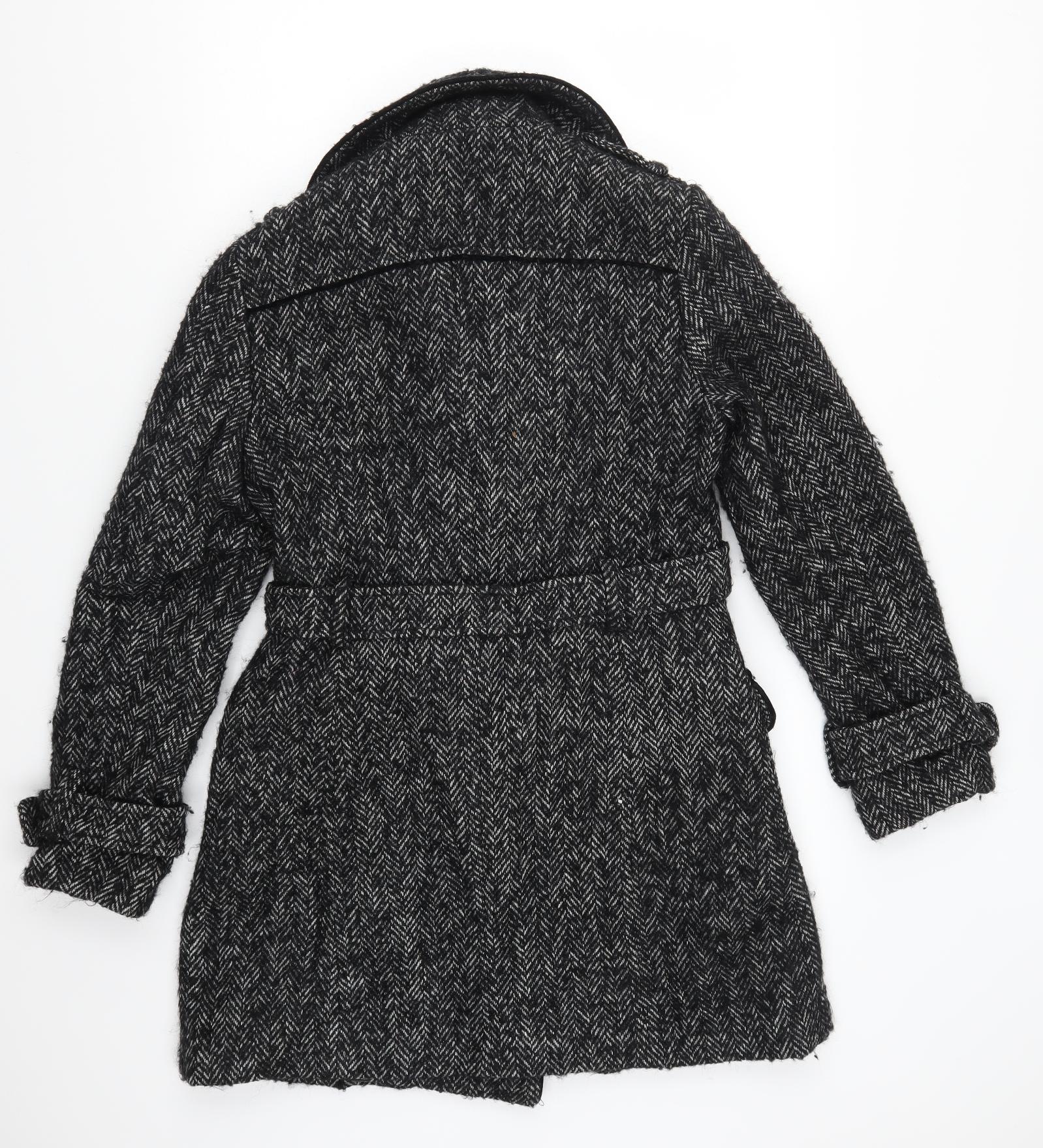 Womens Grey Herringbone Pea Coat Coat Size 12