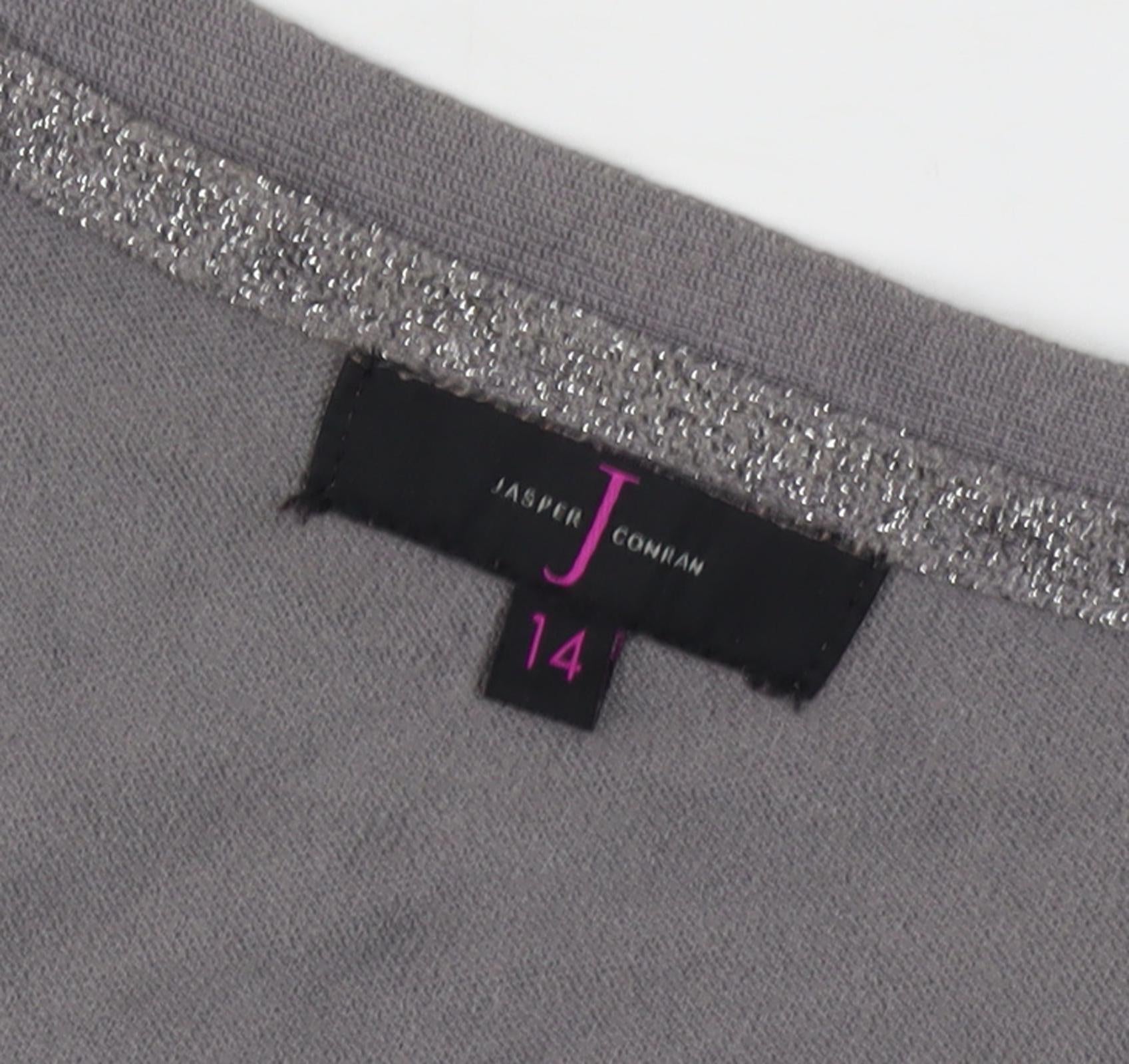 Upgrade your wardrobe with this sophisticated grey short sleeve jumper from Jasper Conran, tailored for elegant women who appreciate quality and style. This beautiful piece offers a chic raglan sleeve design, providing a contemporary twist to the classic jumper silhouette. Crafted from premium materials, this jumper ensures comfort without sacrificing style, making it a versatile addition to your clothing collection. Perfect for any occasion, its understated elegance allows for easy pairing with both formal and casual outfits. Whether heading to a business meeting or enjoying a casual outing, this jumper blends seamlessly into any setting. Its neutral grey colour enriches your repertoire, offering endless styling possibilities. The craftsmanship stands out with meticulous detailing, ensuring durability and long-lasting wear. Experience the blend of comfort, quality, and style with this exceptional piece. Invest in a timeless design that remains a staple throughout the seasons. This lightly worn piece continues to display its original charm, making it a smart choice for fashion-forward individuals. Don't miss out on the opportunity to own this exceptional jumper that oozes elegance, versatility, and enduring style.