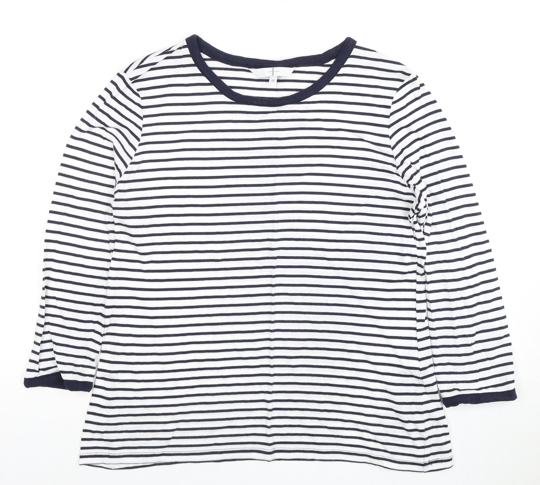 Step into effortless style with this elegant Jasper Conran women's T-shirt, perfect for adding a touch of classic sophistication to your wardrobe. Crafted from soft, breathable cotton jersey, this long-sleeve top promises comfort and timeless fashion. Its crisp white colour adorned with navy stripes offers a versatile look that pairs beautifully with any casual ensemble. Designed for women, this basic style features a flattering round neck and a regular fit that complements all body shapes. The pullover closure ensures an easy, fuss-free wear, making it an ideal choice for everyday outings. Machine washable for easy care, this striped T-shirt is your go-to garment for achieving chic simplicity. Elevate your casual collection with this wardrobe essential today.