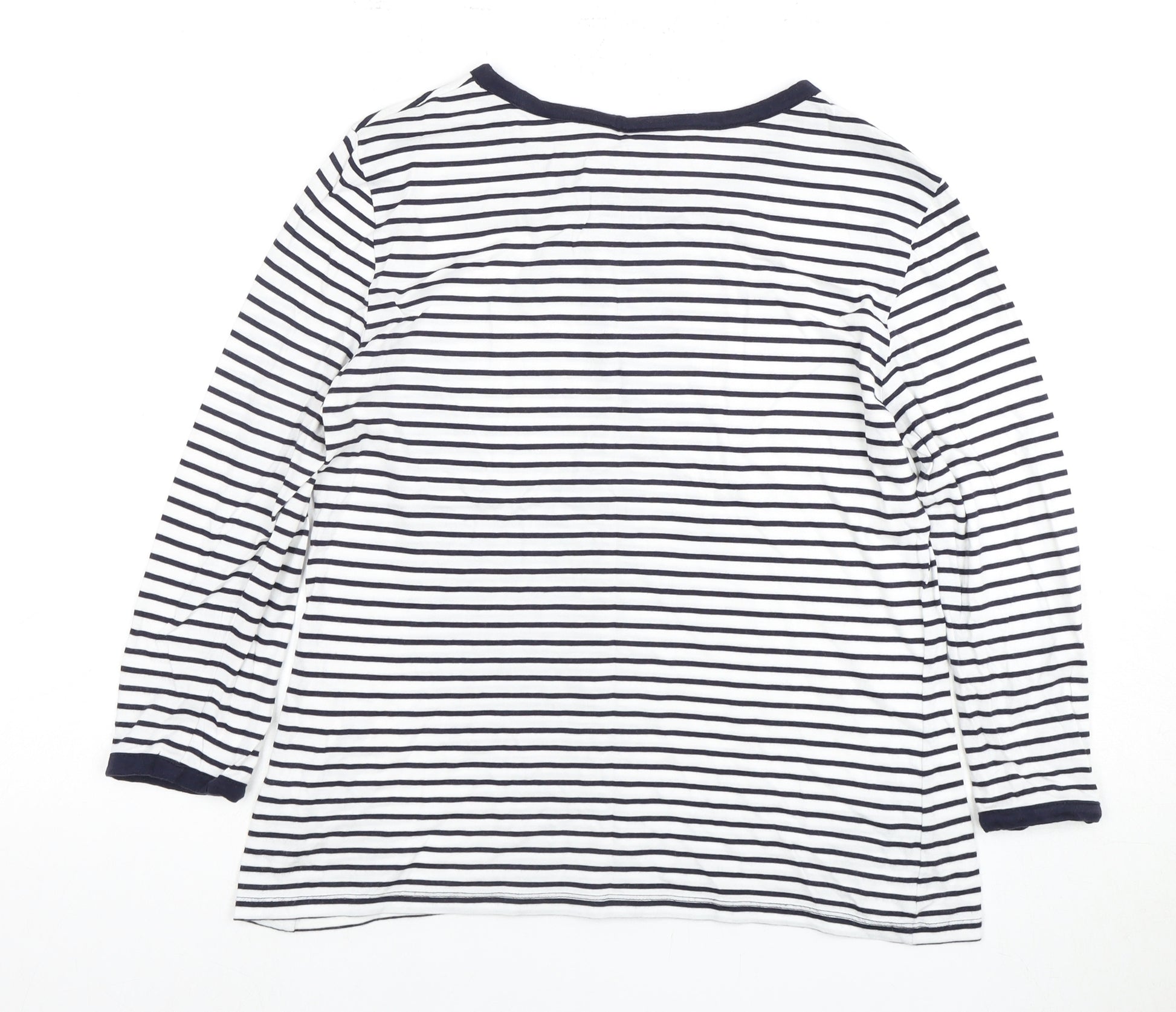 Regular price£12.75£1275Regular priceUnit price / perSale price £12.75 GBPBoden Women Navy White Striped Long Sleeve Boat Neck T-Shirt UK 12 Cotton