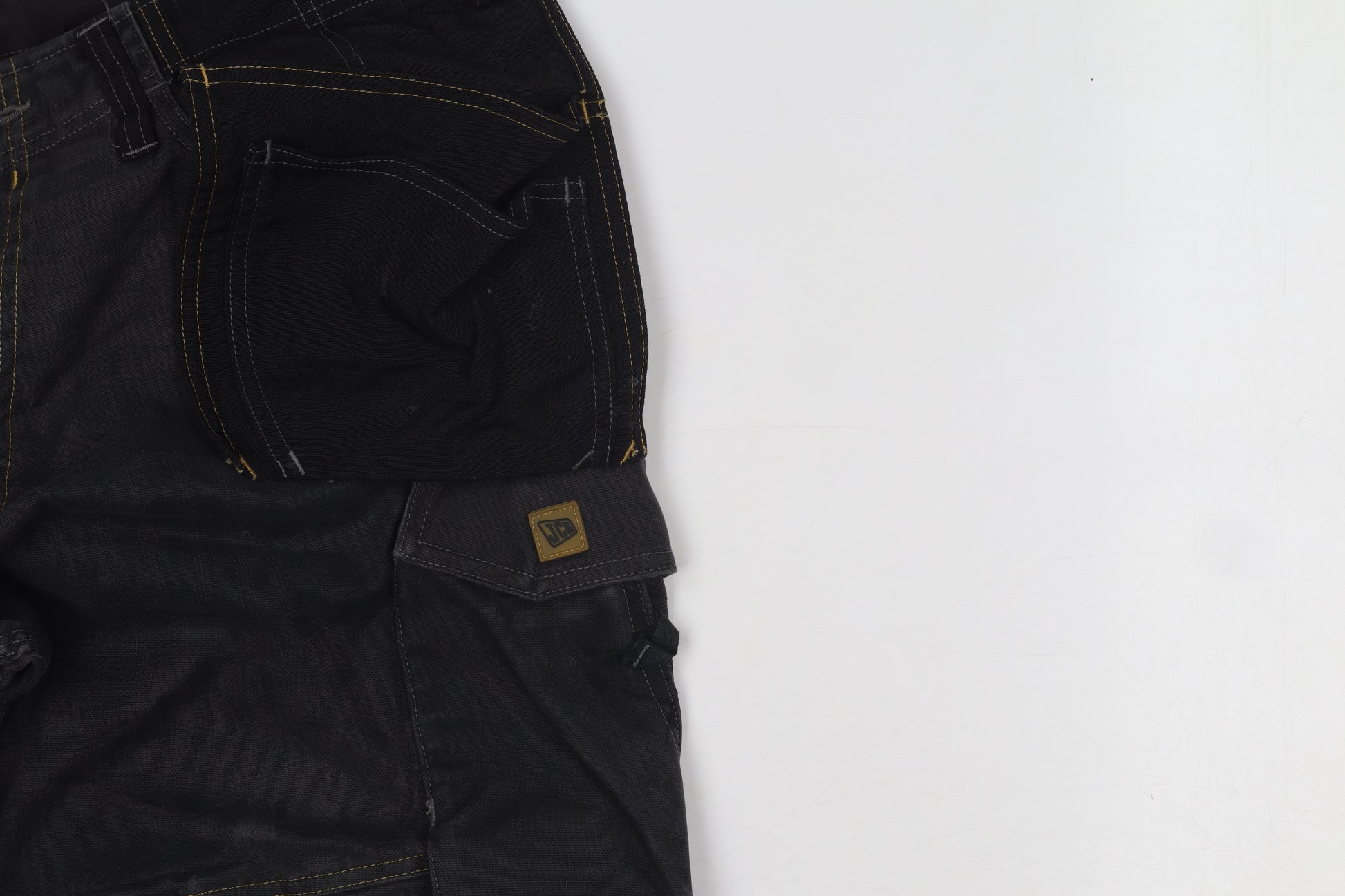 Upgrade your workwear collection with these durable and functional JCB Men's Black Work Jeans. Designed for comfort and practicality, these trousers feature reinforced panels and multiple utility pockets, perfect for those who need reliability on the job. Made from a tough yet breathable cotton-polyester canvas blend, with Cordura nylon reinforcement at key stress points, they offer both flexibility and strength. The mid-rise, straight-leg fit ensures unrestricted movement, while the classic black colour with contrasting stitching gives them a professional and polished finish. Practical details like the cargo pockets, secure fastening system, and reinforced knees make these jeans a dependable choice for tradesmen, DIY enthusiasts, or anyone seeking tough everyday wear. The trademark JCB logo accent adds a distinctive touch of authenticity, reinforcing their rugged brand heritage. Perfect for cooler months, the thick fabric blend provides comfort and durability in demanding conditions. Easy to care for and machine washable, these jeans are made to withstand heavy use without sacrificing comfort. Whether you’re on site or off-duty, they combine functionality with long-lasting style. Conditioned in very good pre-owned shape, showing only light wear and minor marks consistent with normal use, these JCB jeans represent excellent quality at an affordable price. An ideal option for anyone seeking reliable men’s work trousers with comfort, utility, and durability in mind. Add these versatile JCB jeans to your wardrobe and experience the perfect balance of strength and everyday practicality.