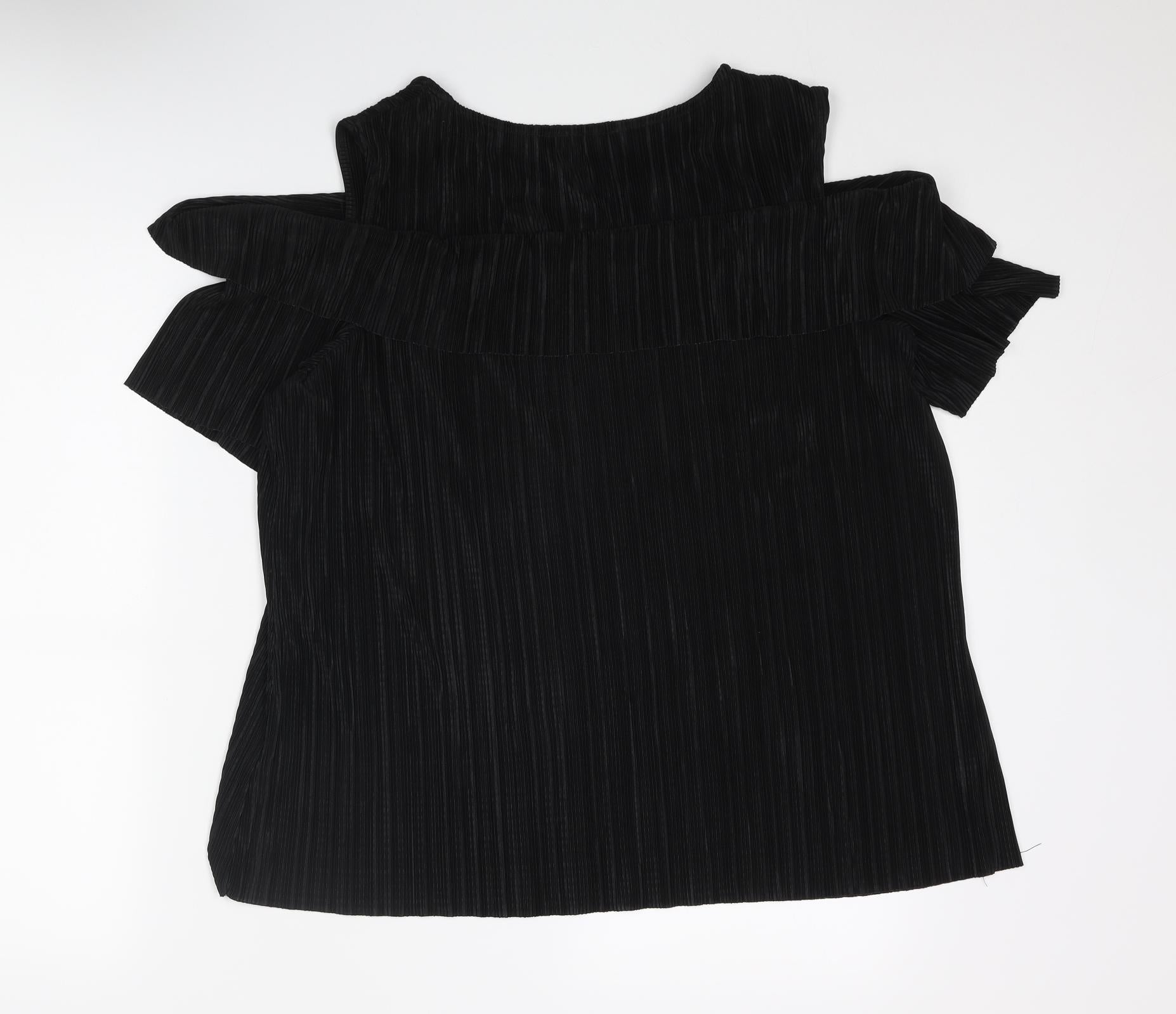 Womens Black Polyester Basic Blouse Size 20 Round Neck - Cold Shoulder