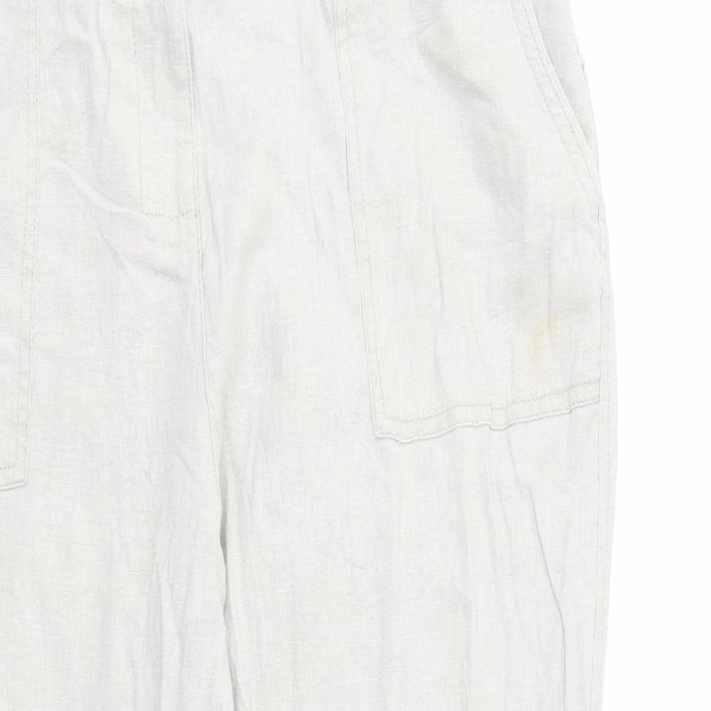 Womens Grey Linen Trousers Size 16 L26 in Regular Button