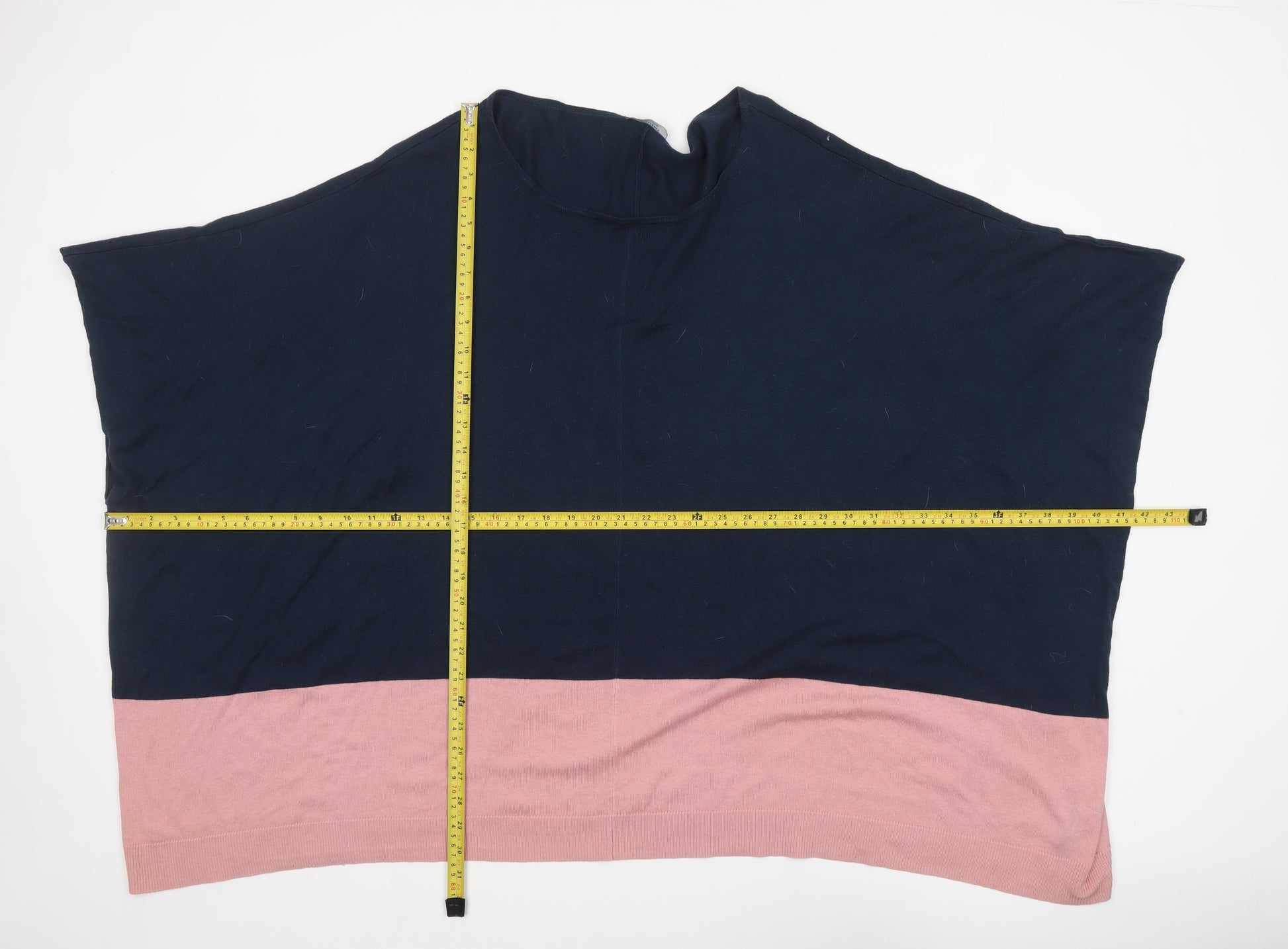 Add effortless style to your wardrobe with this chic JD Williams Women's Cape Style Knit Jumper. Designed in a relaxed, flowing silhouette, this elegant poncho-like top features a classic nautical-inspired combination of navy and blush pink at the hem. Perfect for layering, it offers a sophisticated blend of comfort and fashion. Made from a smooth knit fabric with 80% viscose and 20% nylon, this piece feels soft against the skin and provides a comfortable stretch ideal for everyday wear. The boat neckline adds a flattering drape across the shoulders, while the loose fit ensures a relaxed yet refined look suitable for multiple occasions. Whether you're pairing it with jeans for a casual coffee date or layering it over a crisp shirt for workwear chic, this jumper brings versatile sophistication to your seasonal rotation. The tight-knit construction offers warmth without bulk, making it a practical choice for autumn, spring, and milder winter days. JD Williams is known for quality and comfort, and this cape-style jumper delivers both with impeccable craftsmanship. Machine washable for easy care, it maintains its shape and colour wear after wear. Ideal for women who love fuss-free, polished elegance with a touch of modern simplicity, this item balances functionality with fashion-forward appeal. The multicoloured design gives it a fresh pop of contrast that elevates any outfit instantly. Lightly used and in excellent condition, with only minor lint visible, this stylish piece is ready to add timeless charm to your wardrobe at a great value. Don’t miss the opportunity to enjoy premium comfort and graceful styling in one perfect knitwear piece.