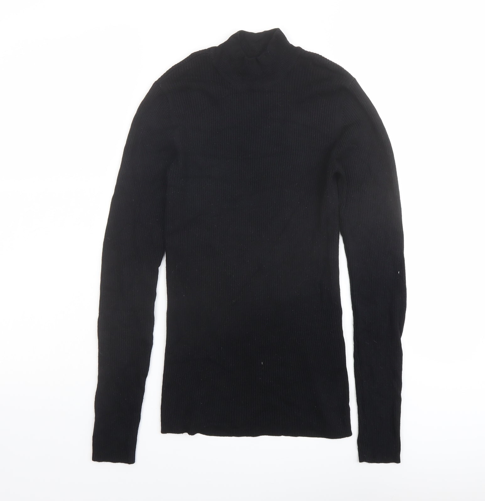 Womens Black High Neck Viscose Pullover Jumper Size S