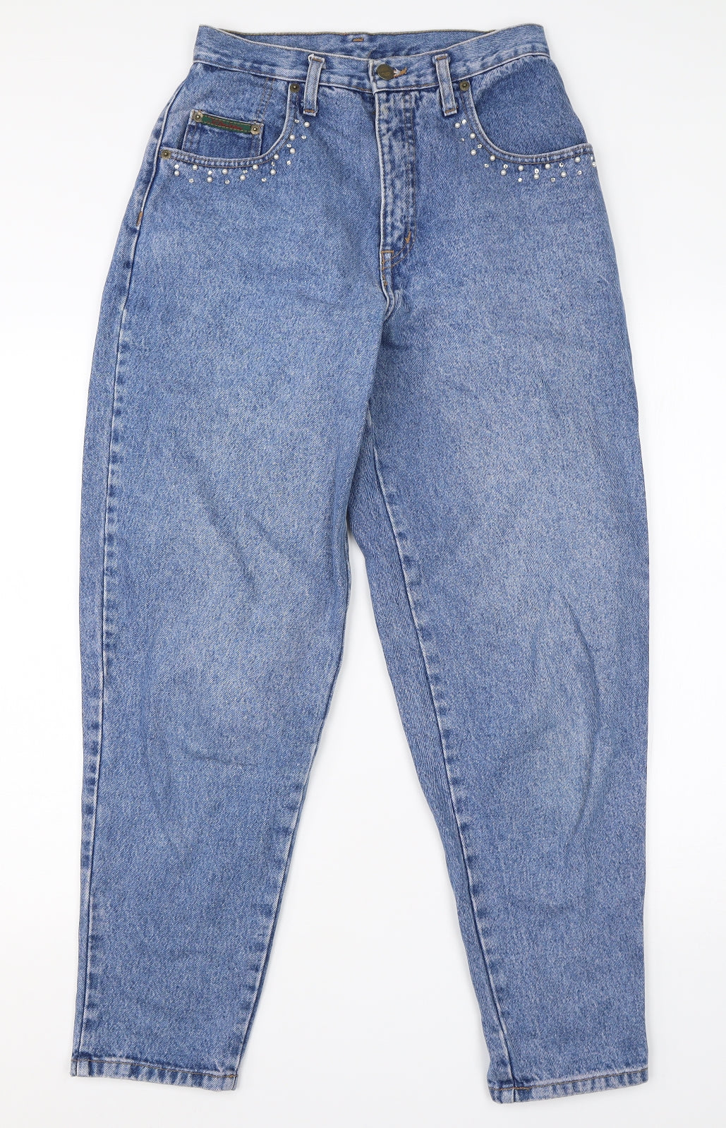 Womens Blue Cotton Mom Jeans Size 30 L26 in Regular