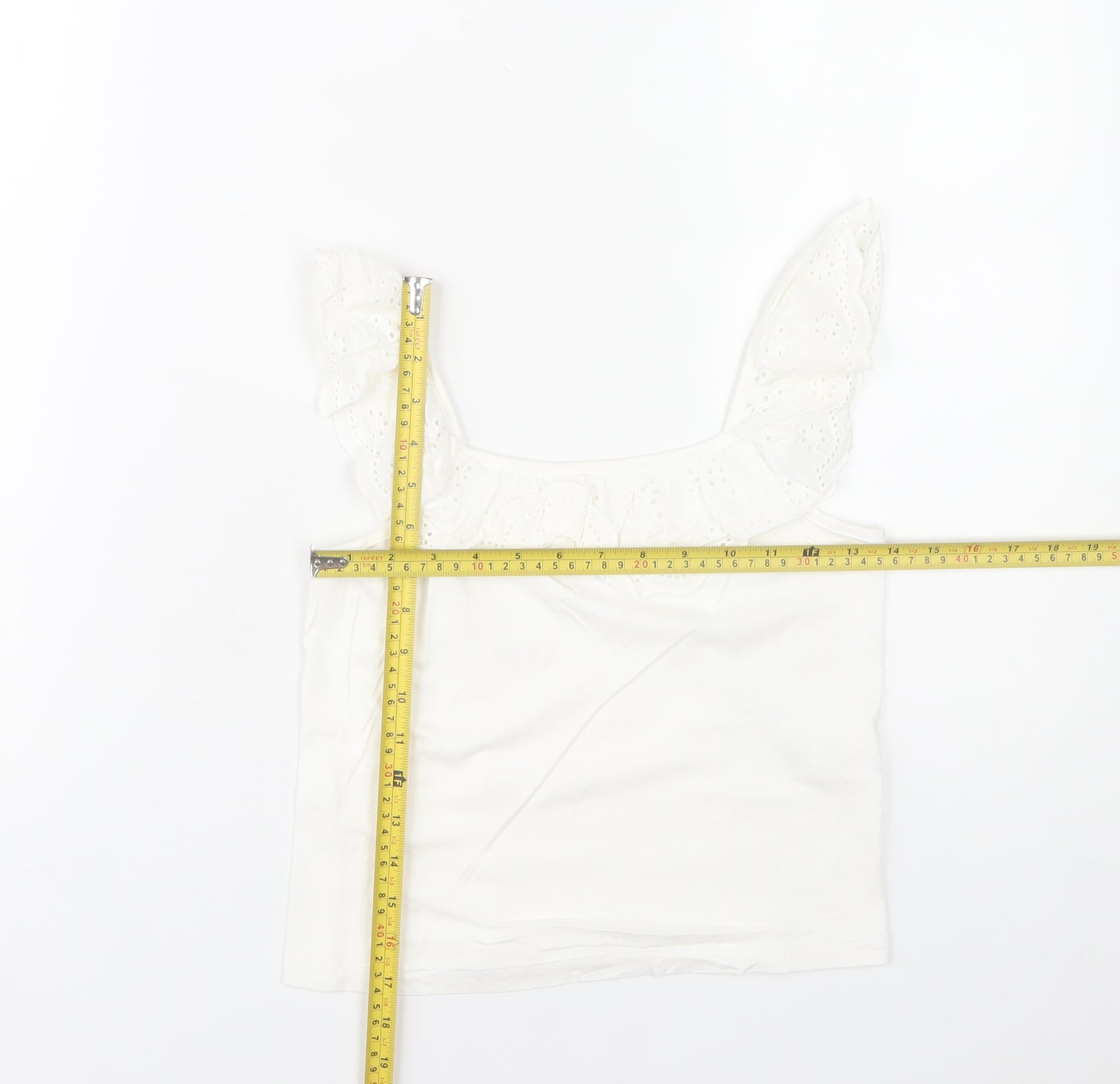 Girls White 9-10 Years Cotton Ruffle Sleeve Camisole Top