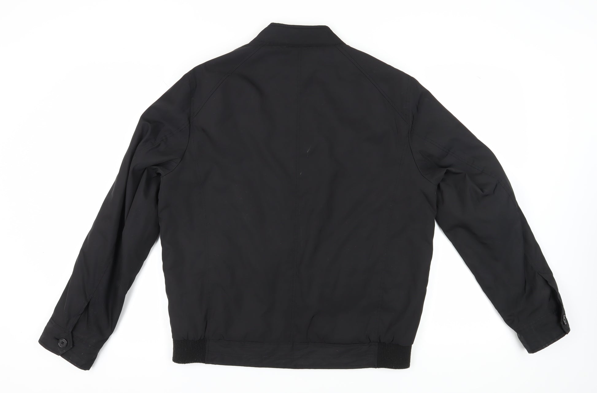 Elevate your wardrobe with this sleek Jeff Banks Men's Bomber Jacket, perfect for the crisp autumn and winter months. Crafted from 100% polyester, this black jacket combines style and functionality, featuring a classic fit and a zip closure for a streamlined silhouette. This versatile jacket is designed with a stand-up collar and practical zipped pockets, making it ideal for casual occasions or on-the-go use. Though pre-owned, it remains in good condition with only minor marks on the fabric, ensuring a stylish yet comfortable wear. Pair it with jeans or chinos for a laid-back look or dress it up with smarter trousers for an effortlessly sharp appearance. Don't miss out on this wardrobe staple that balances classic style with modern touches, offering a perfect addition to any man's collection.