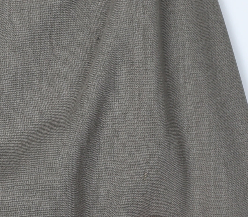 Elevate your wardrobe with this Jeff Banks men's grey wool blazer. Designed in a classic regular fit, this stylish blazer is tailored to perfection from 100% wool, ensuring both comfort and a sleek appearance. Featuring a notch lapel and single-breasted, two-button front, it offers timeless elegance for any formal occasion. The blazer comes in a regular length and includes four-button sleeves for added sophistication. Its double-vented back ensures ease of movement and a polished silhouette. This versatile piece is part of a 2-piece style, perfect for pairing with formal trousers or mixing with other pieces in your collection. Its subtle grey hue makes it an ideal choice for all seasons. While the blazer has minor signs of wear, it remains in very good condition, offering a fantastic option for a stylish, budget-conscious shopper. Ideal for weddings, business meetings, or any formal event where you want to make a lasting impression. Secure this versatile wardrobe staple and showcase your refined style today.