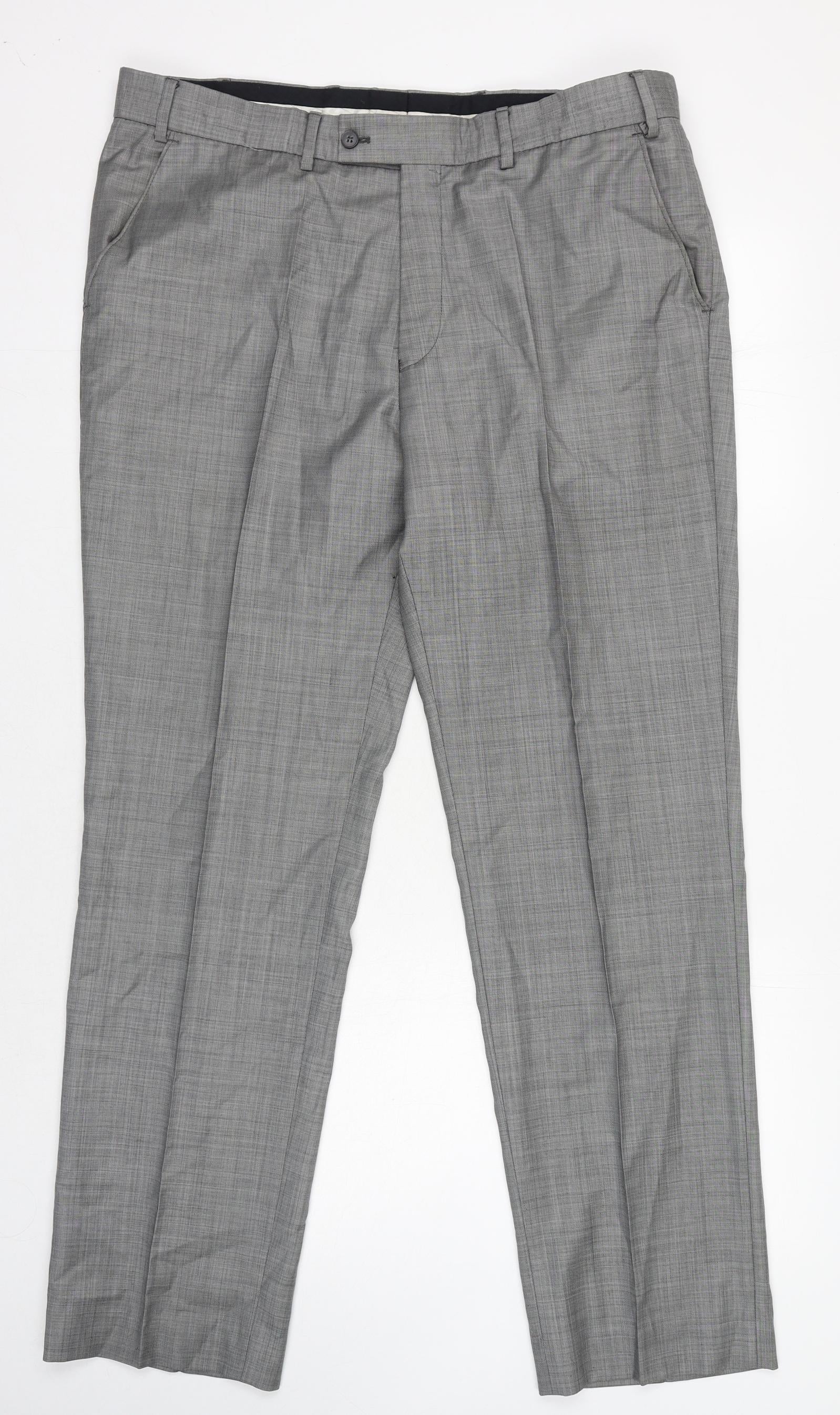 Mens Grey Wool Tuxedo Suit Trousers Size 38 - Pockets