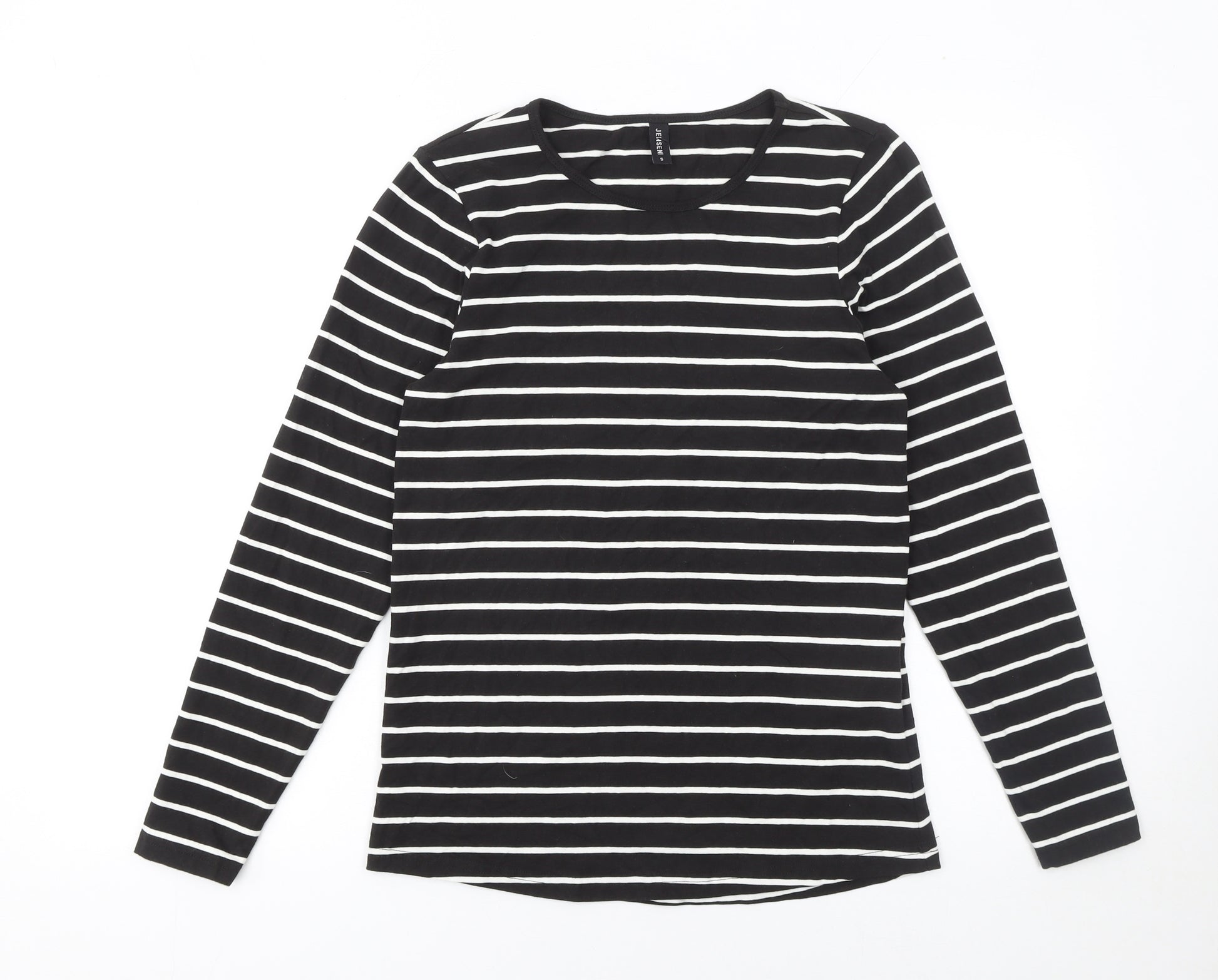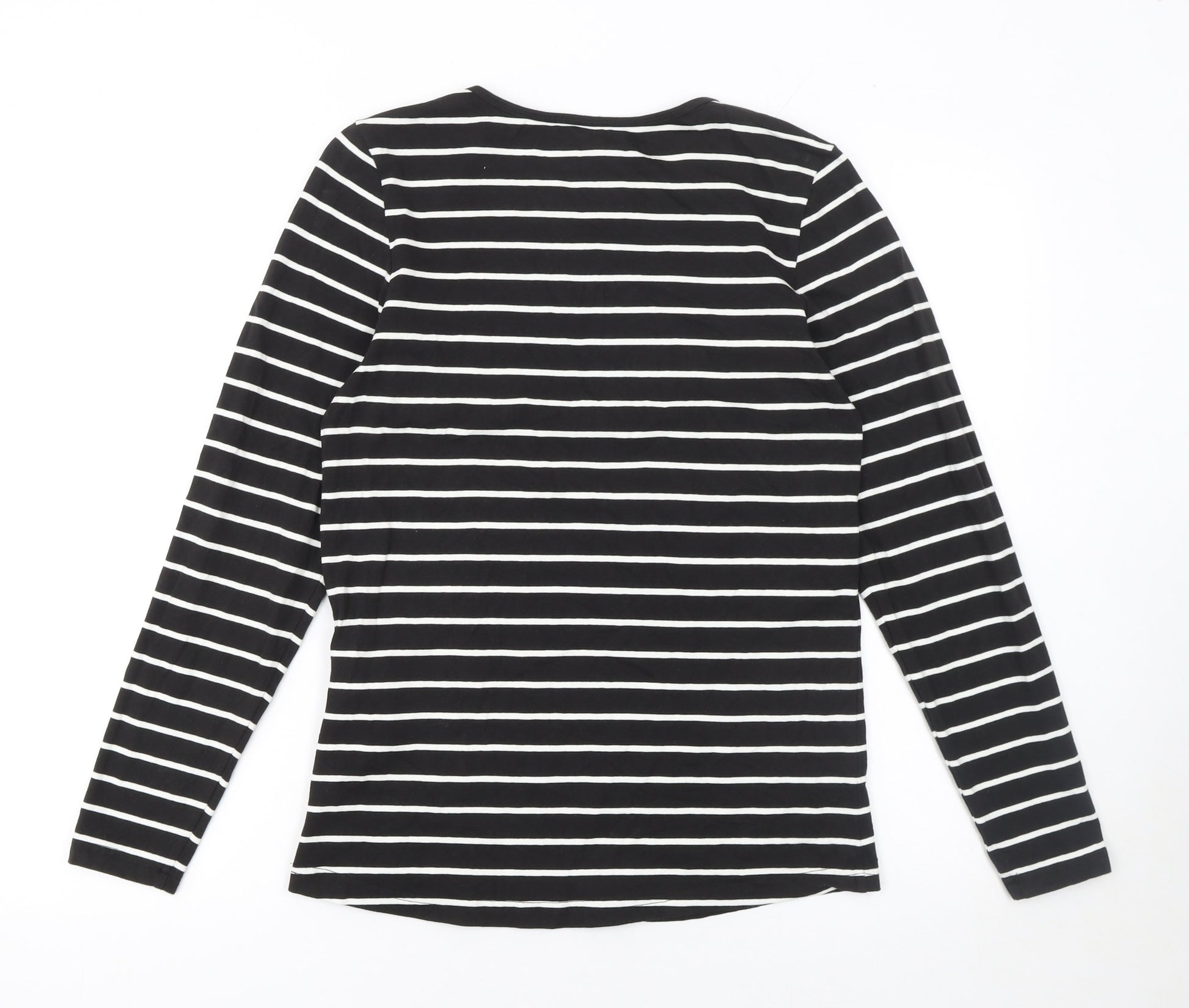 Women’s Black Striped Long Sleeve Jersey Cotton T-Shirt Size S