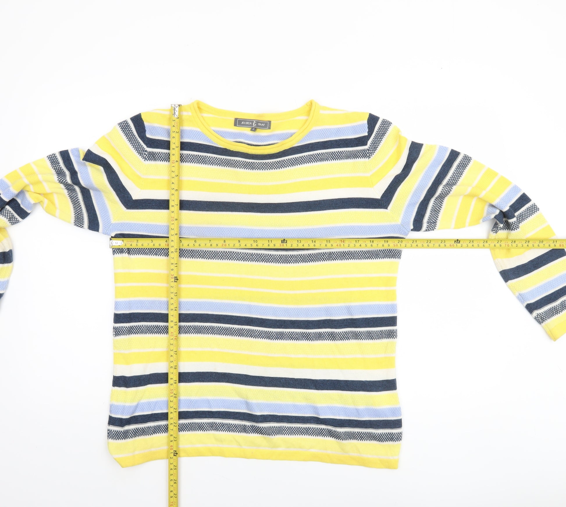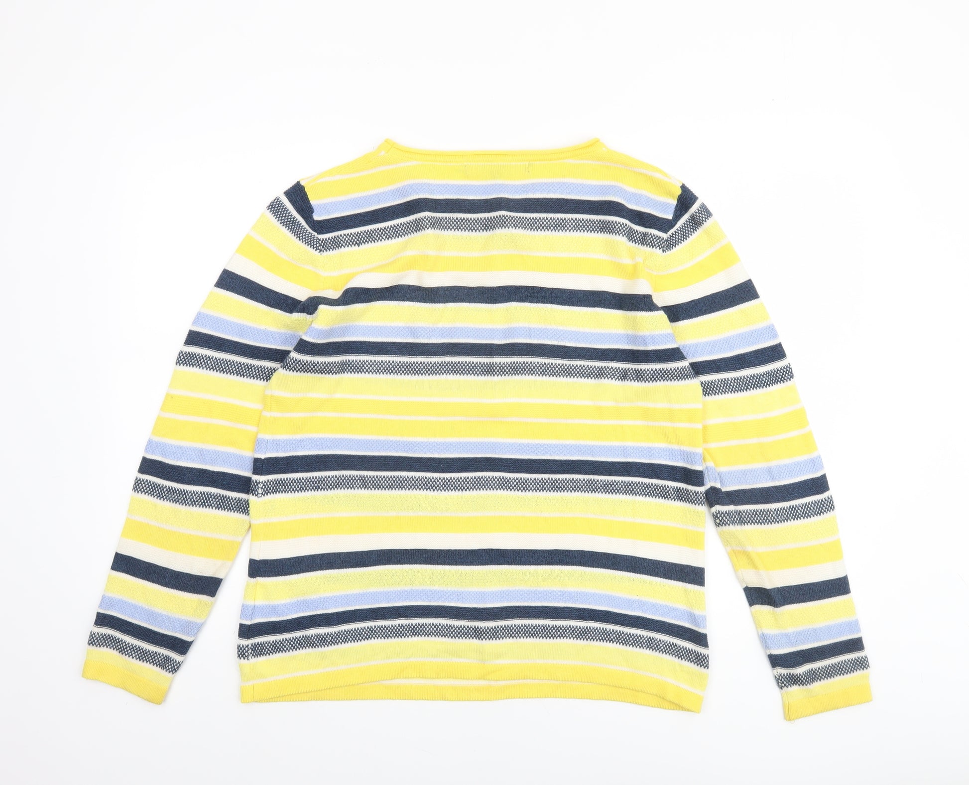 Women Yellow Striped Pullover Jumper Size M Acrylic Cotton Knit