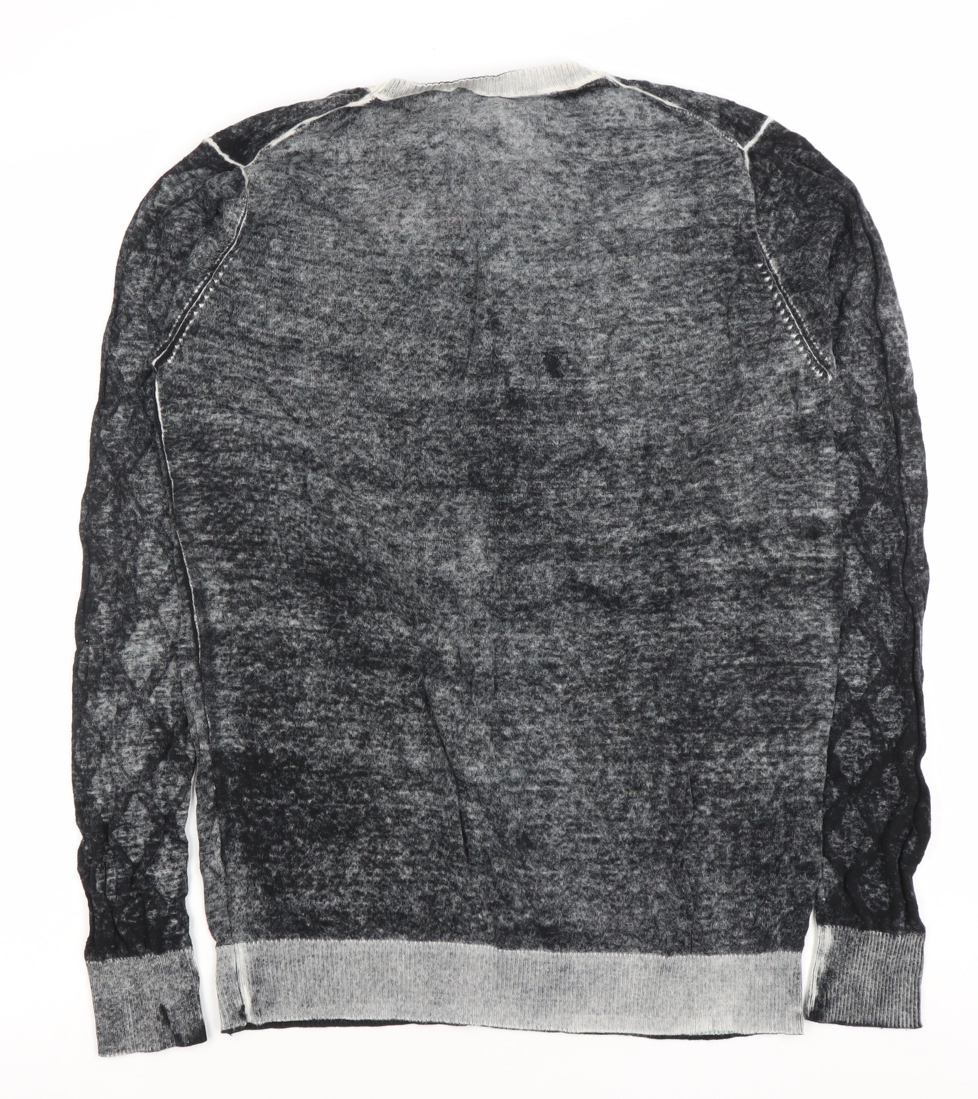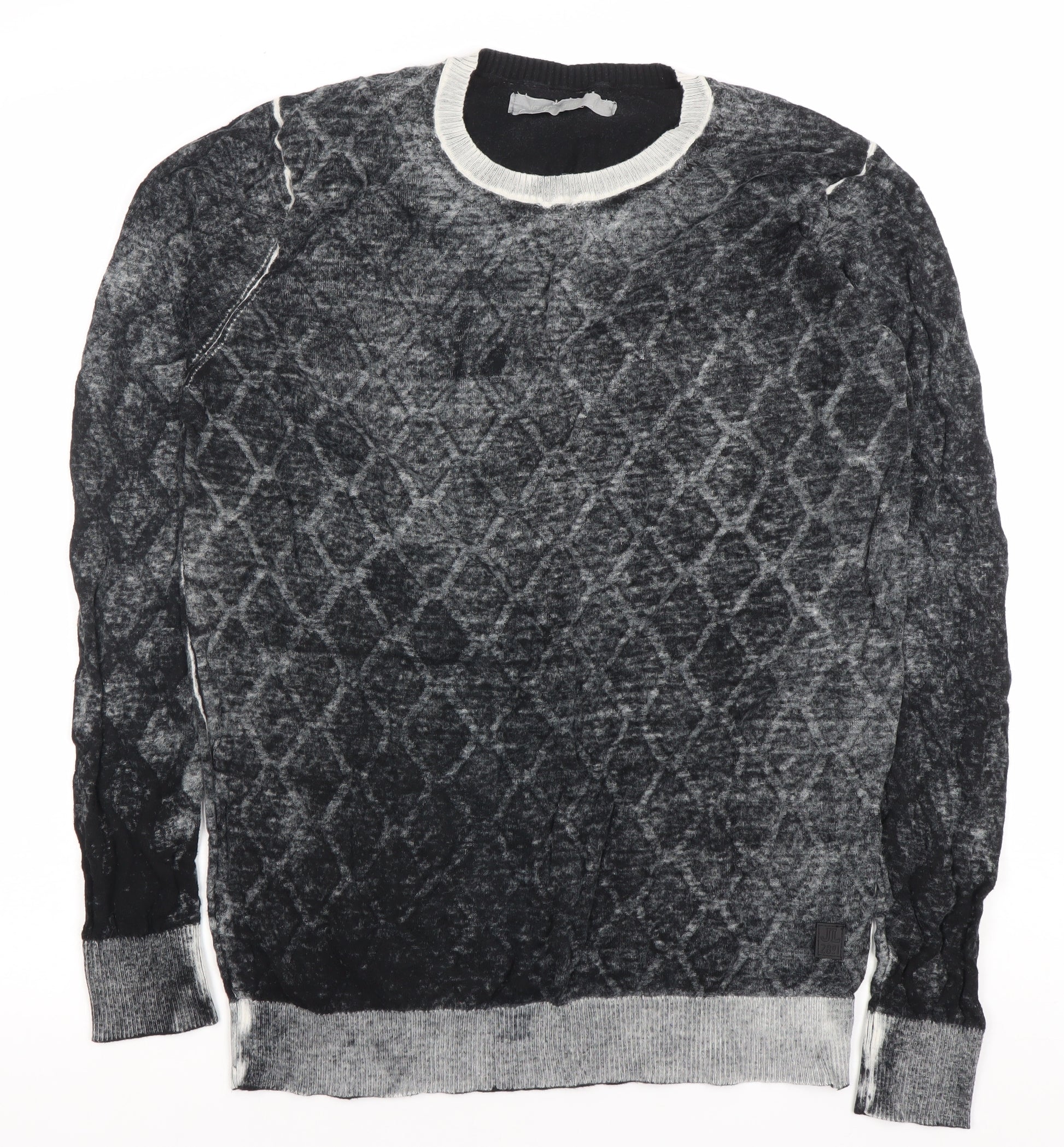 Upgrade your knitwear collection with this Jet Lag Original men's pullover jumper, offering a stylish and versatile option perfect for cooler months. Crafted from 100% cotton, this lightweight yet warm piece ensures all-day comfort while maintaining breathability. Designed in an attractive grey hue with a subtle geometric pattern, it’s a sophisticated choice for casual wear and can be easily paired with jeans, chinos, or even layered over a shirt for a more refined look.The crew neck design and long sleeves add to the timeless appeal, making it a staple addition to your wardrobe. Constructed with a tight-knit fabric type, this jumper has a soft texture while ensuring durability and shape retention after multiple wears and washes. Its regular fit provides a comfortable silhouette suitable for various body shapes without feeling restrictive.Perfect for both autumn and winter, this jumper delivers understated style whilst keeping you warm. The geometric design adds subtle texture and visual interest without overwhelming your outfit, giving it a modern edge. Whether you're enjoying weekend outings, casual meet-ups, or simply relaxing at home, this versatile jumper is a dependable choice.Machine washable for easy care, this jumper offers practicality alongside its style. With its high-quality cotton construction and excellent condition, it’s a fantastic second-hand find for those after premium quality without the premium price tag.Make this Jet Lag Original grey cotton geometric knit part of your everyday rotation and enjoy a sophisticated casual look that will see you through many seasons to come.