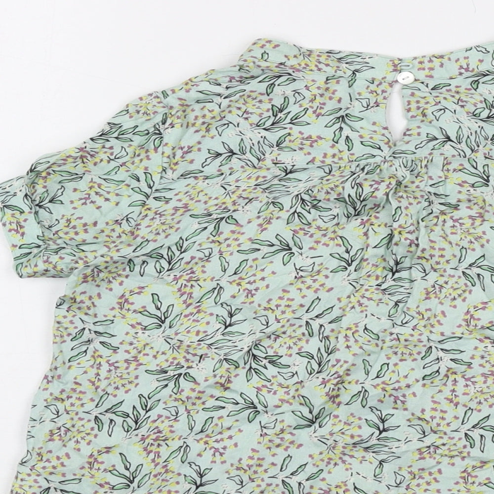 Girls Green Floral Viscose Basic Blouse Size 8-9 Years V-Neck Pullover