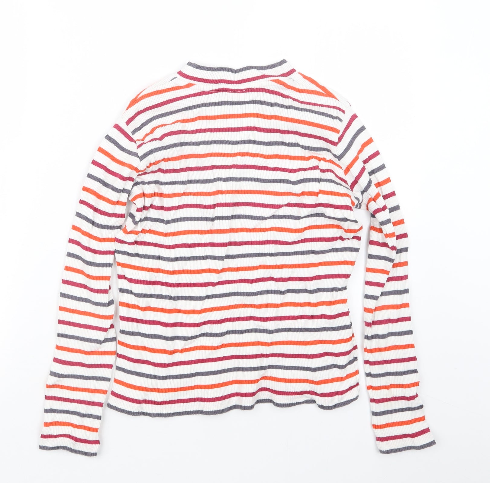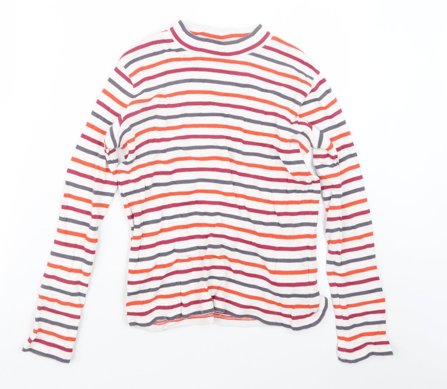 Girls White Striped Pullover Jumper Size 12-13 Years