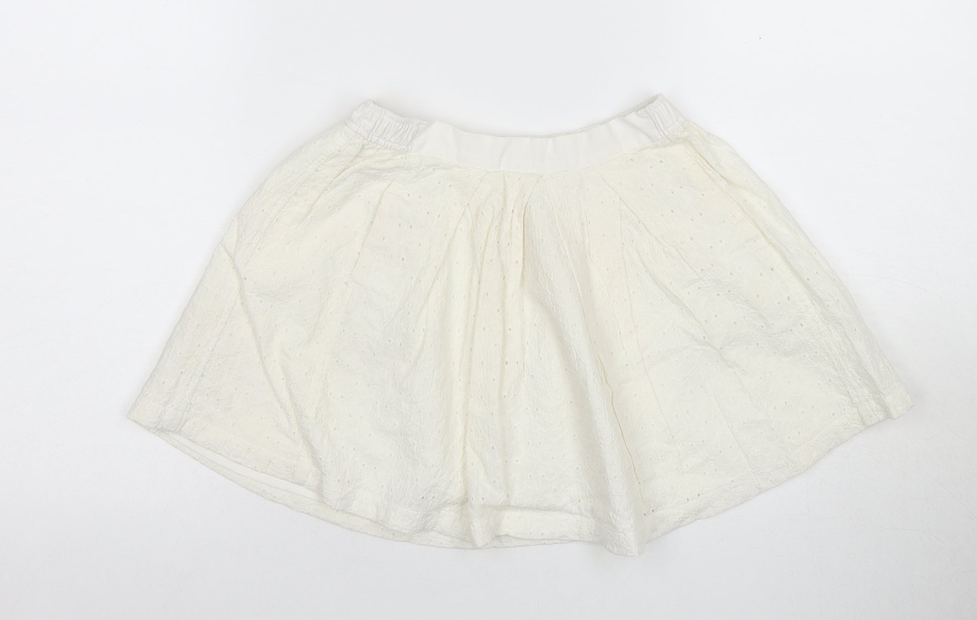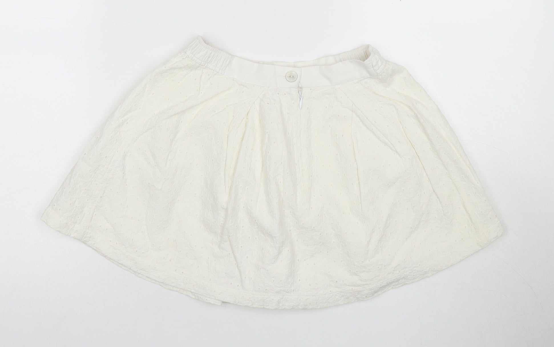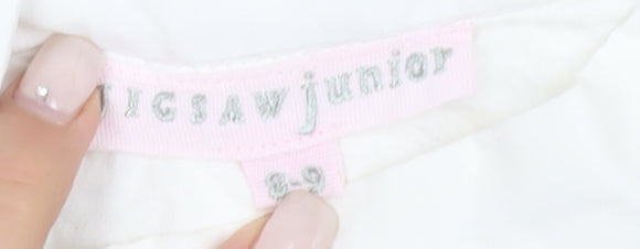 Capture the essence of playful elegance with this beautiful ivory A-Line skirt from Jigsaw Junior, perfect for your little girl's wardrobe. Designed with a nod to classic styling, this skirt offers both comfort and style, making it ideal for everyday wear during spring and summer. Crafted from 100% cotton, it promises breathable softness, ensuring your child stays cool and comfortable through all her adventures. The subtle embroidered fabric adds a touch of texture, while the elastic waistband ensures a snug fit that’s easy to pull on and off. The button and zip closure at the side provides a secure fit while adding a cute accent detail. This versatile piece can be easily dressed up for special occasions with a smart top and shoes or kept casual for playdates and outings. Pair it with a wide range of tops and sandals to create adorable outfits that she’ll love wearing. Ideal for girls aged 8-9 years, this skirt reinforces everyday wearability with its knee-length cut and no-pattern design, keeping it simple whilst stylishly chic. Despite its gentle use, its condition remains excellent with no visible signs of wear, making it a wonderful addition to any young girl's fashion selection. Make this Jigsaw Junior A-Line skirt her go-to choice this season and watch her express her style with confidence.