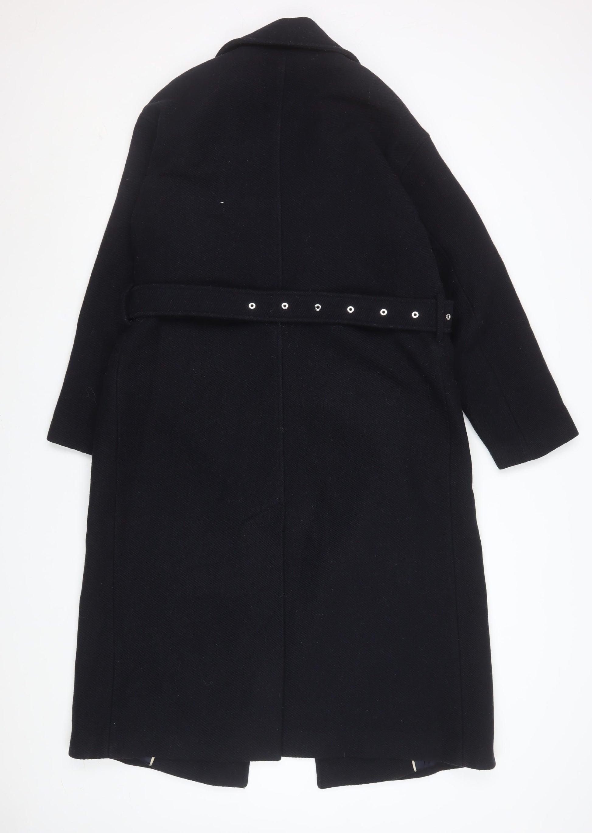 Women’s Black Wool Belted Overcoat Size 10 Long Lined Winter Coat